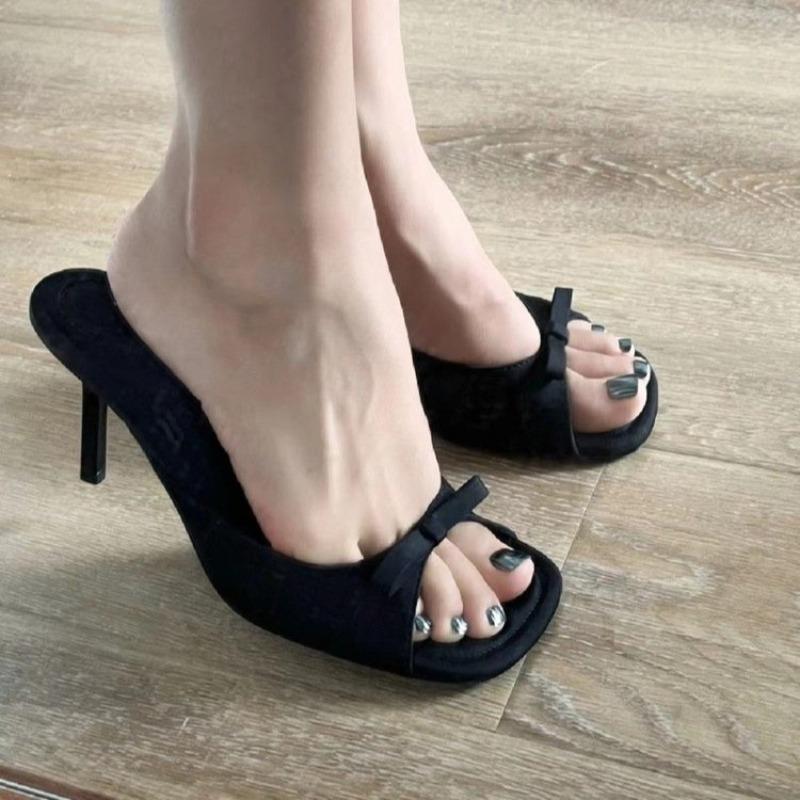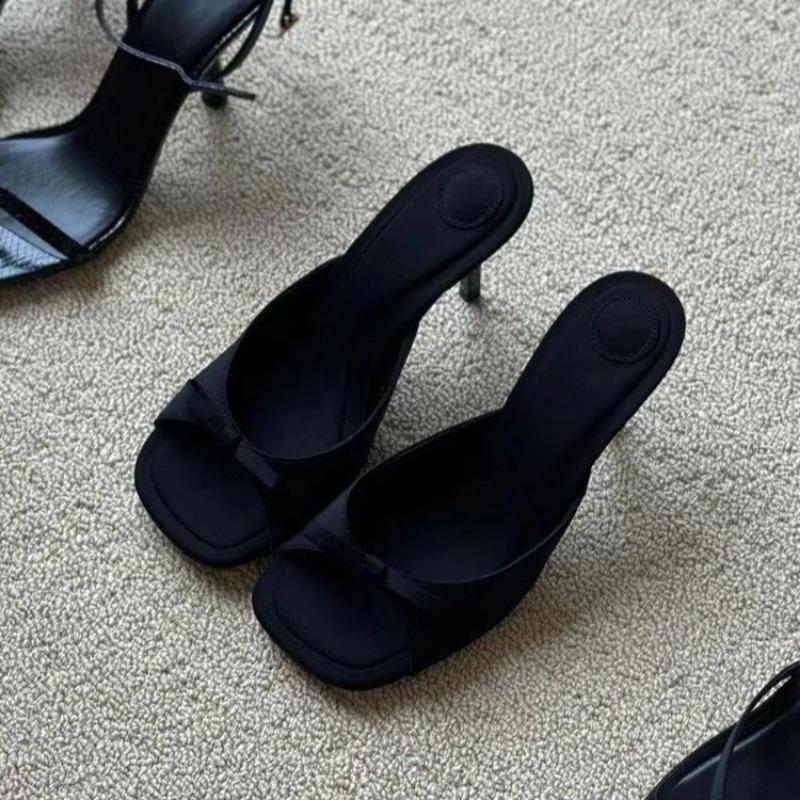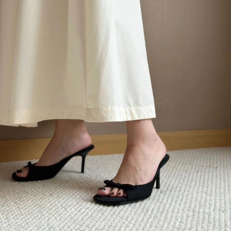Мода Летняя мода атласные женские тапочки с бантом женские сандалии на тонком высоком каблуке уличные формальные тапочки