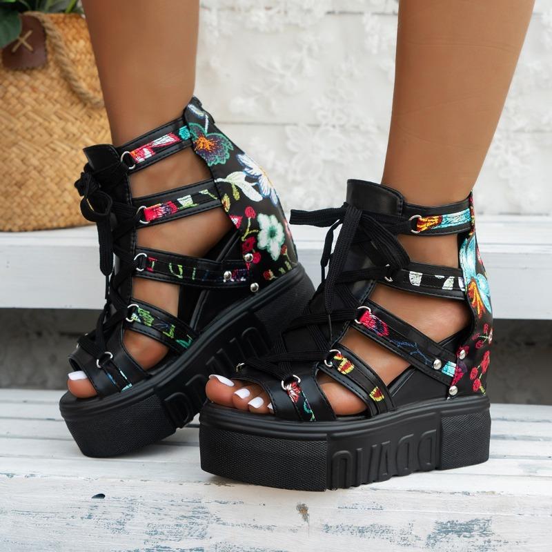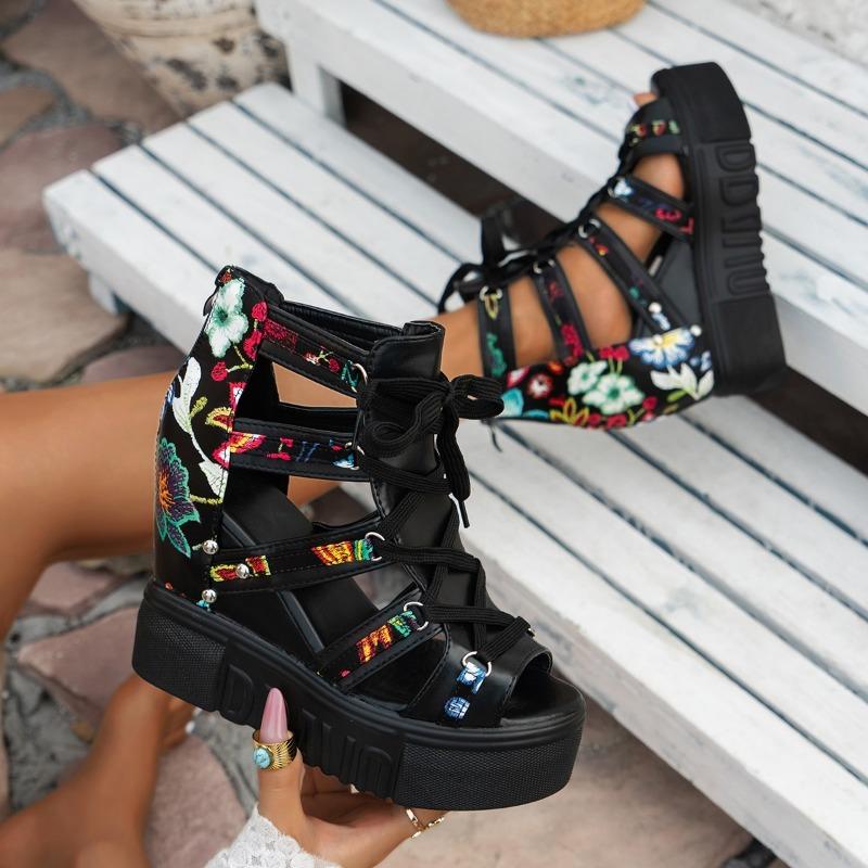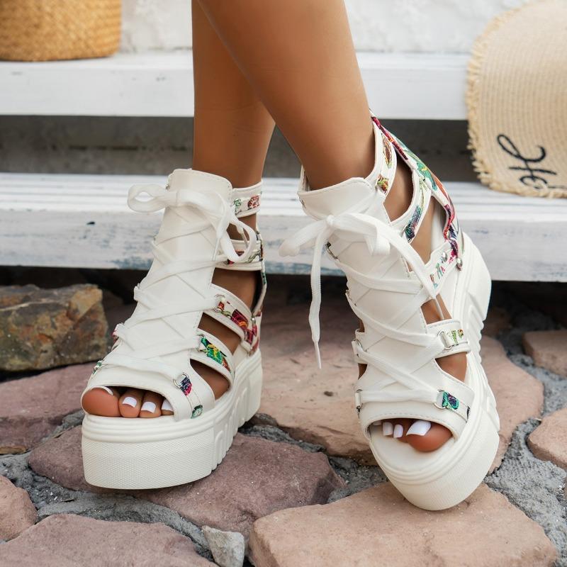 Модная обувь для женщин 2024 года, новые римские сандалии, женские, на высоком каблуке, со шнуровкой, на танкетке, с застежкой-молнией сзади