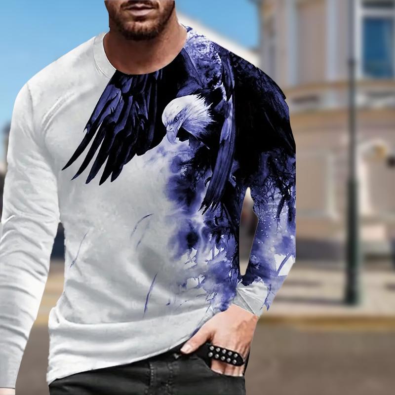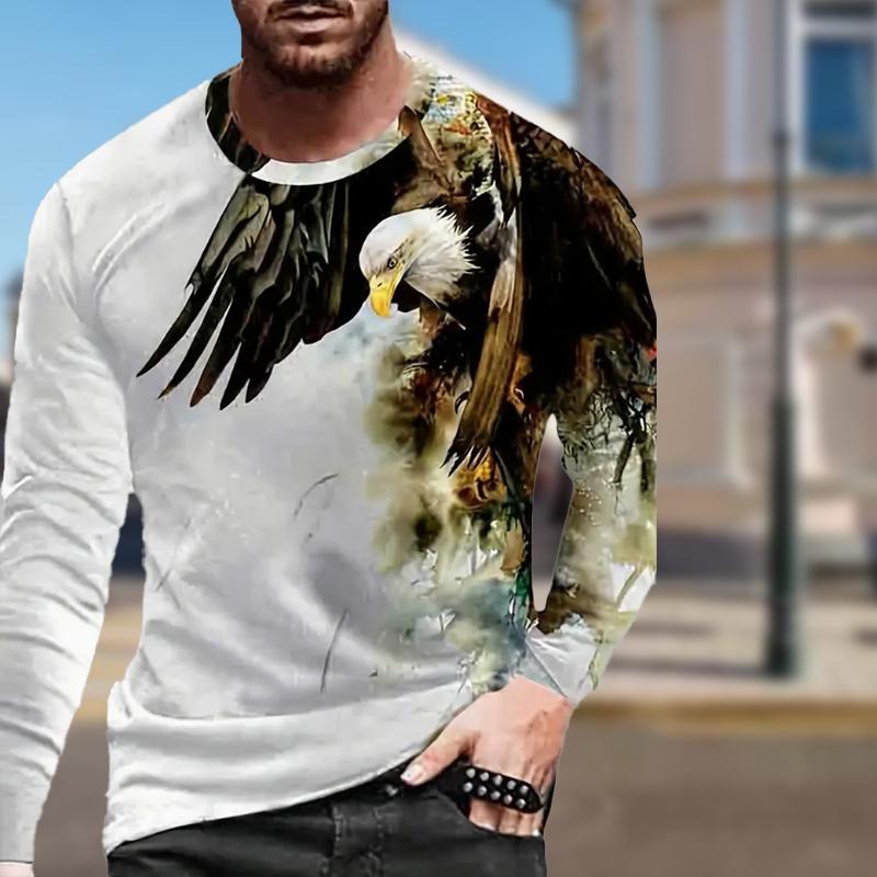 Крутой принт орла мужские футболки с длинным рукавом футболки с круглым вырезом повседневный свитер мужская одежда больших размеров