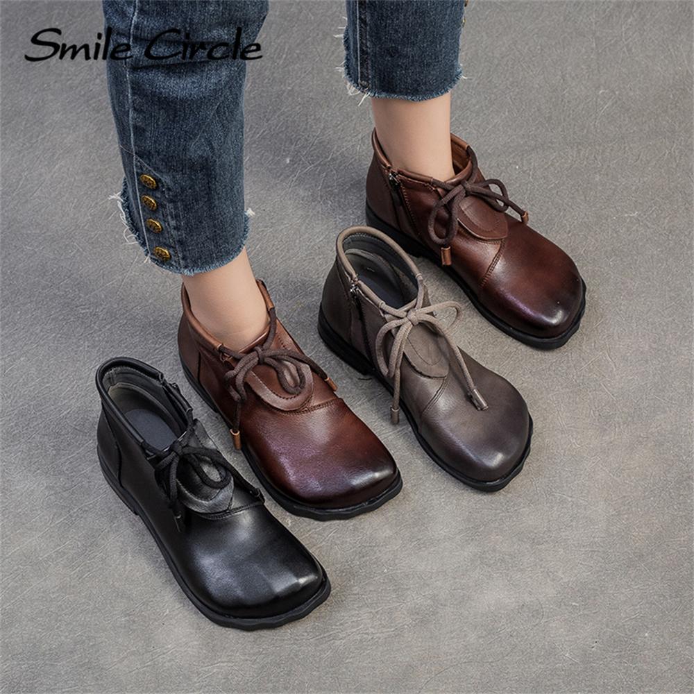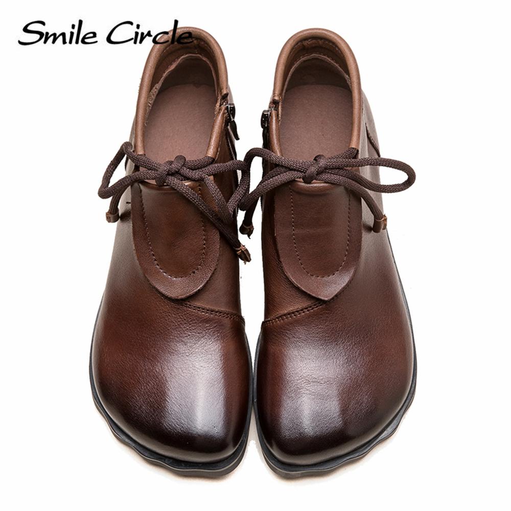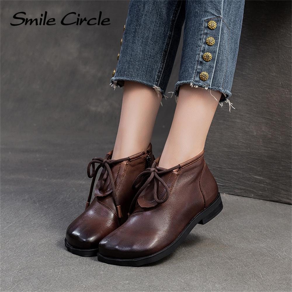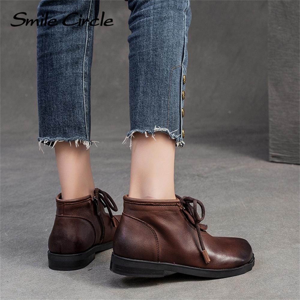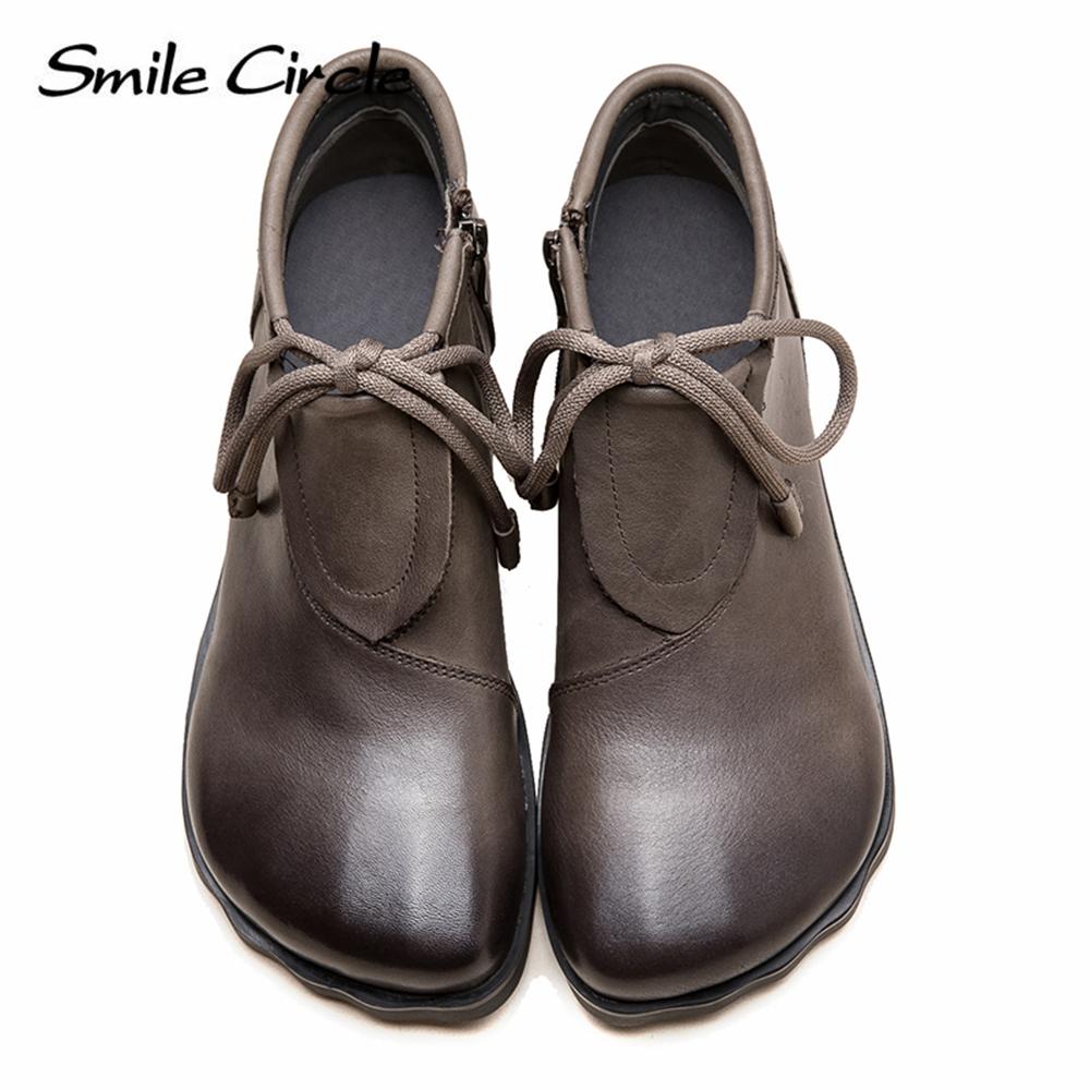 Женские ботинки из натуральной кожи, на шнуровке, с круглым носком, на плоской подошве, модные, удобные, повседневные ботинки