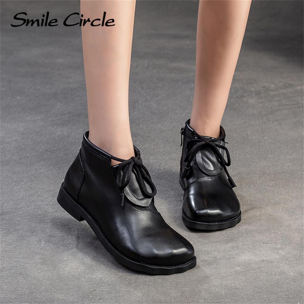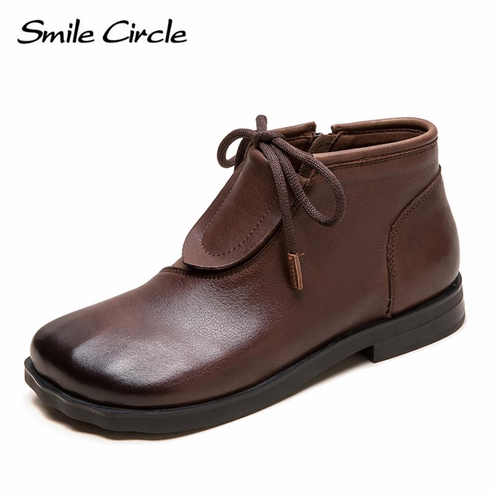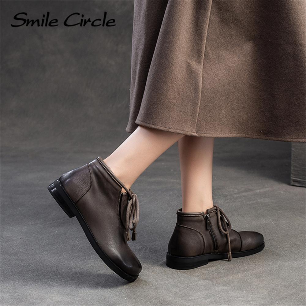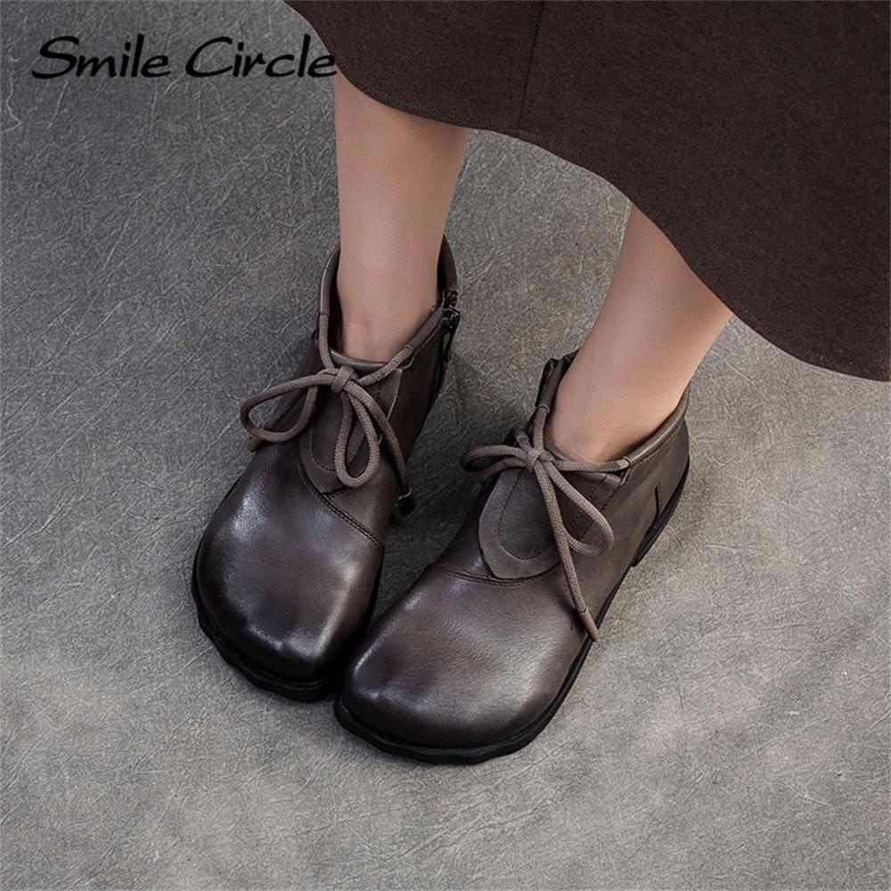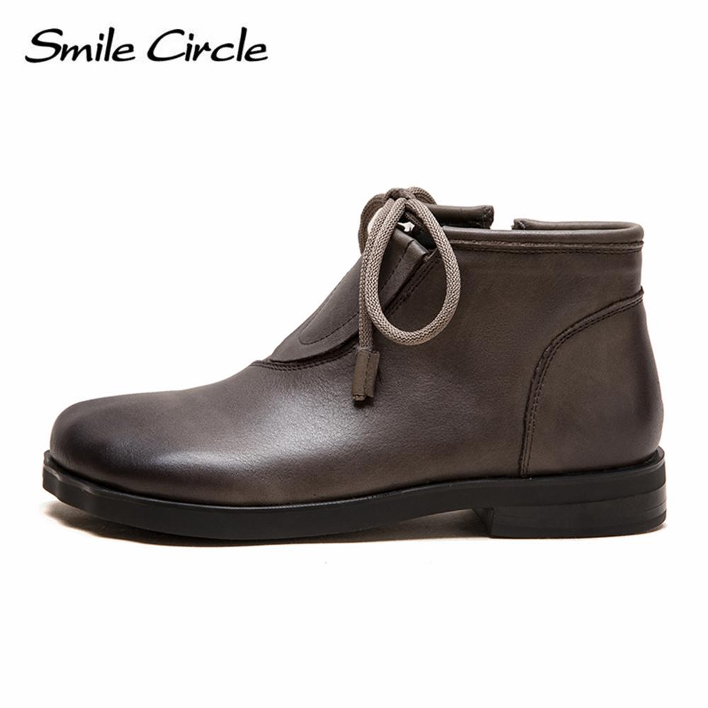 Женские ботинки из натуральной кожи, на шнуровке, с круглым носком, на плоской подошве, модные, удобные, повседневные ботинки