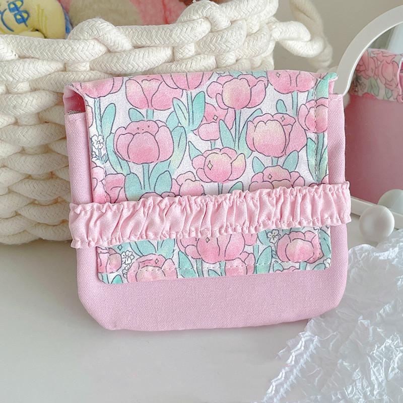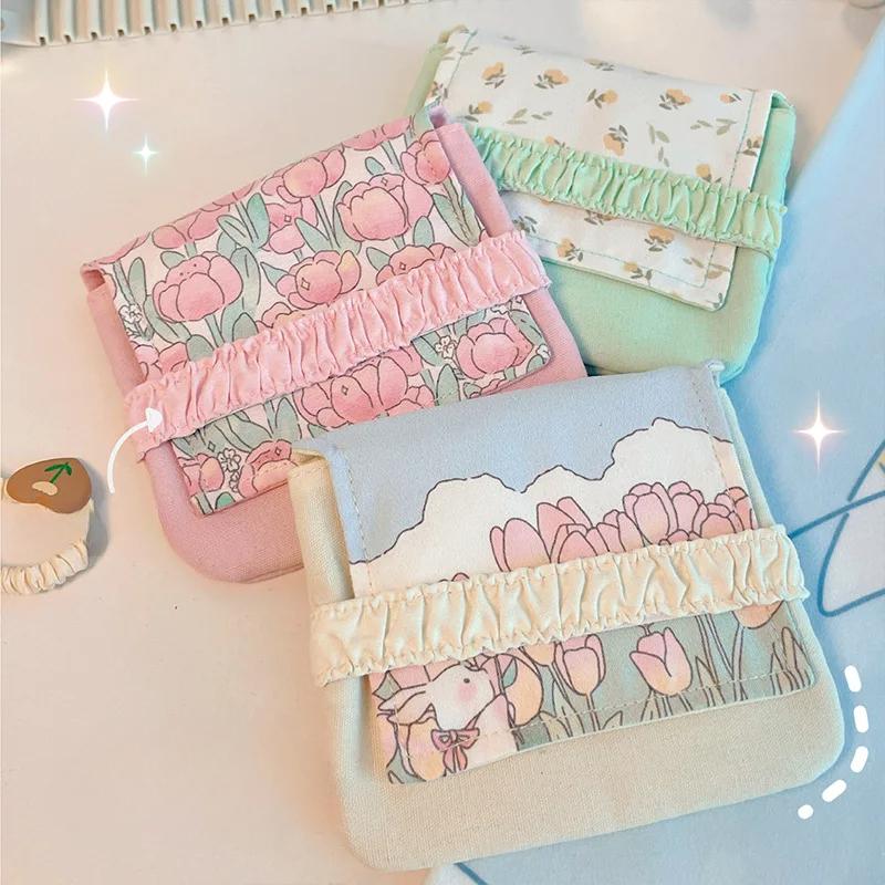 1 шт. японская эстетическая сумка для гигиенических прокладок в виде тюльпана с милой мультяшной девочкой, большая вместимость, дорожная портативная сумка для хранения гигиенических прокладок