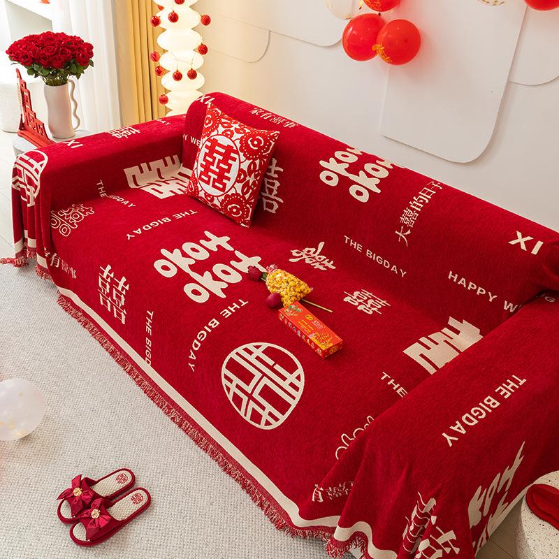 Чехол для дивана из красного шенилла на все времена года, цельный чехол для дивана с защитой от царапин от кошек, свадебный и праздничный чехол для дивана