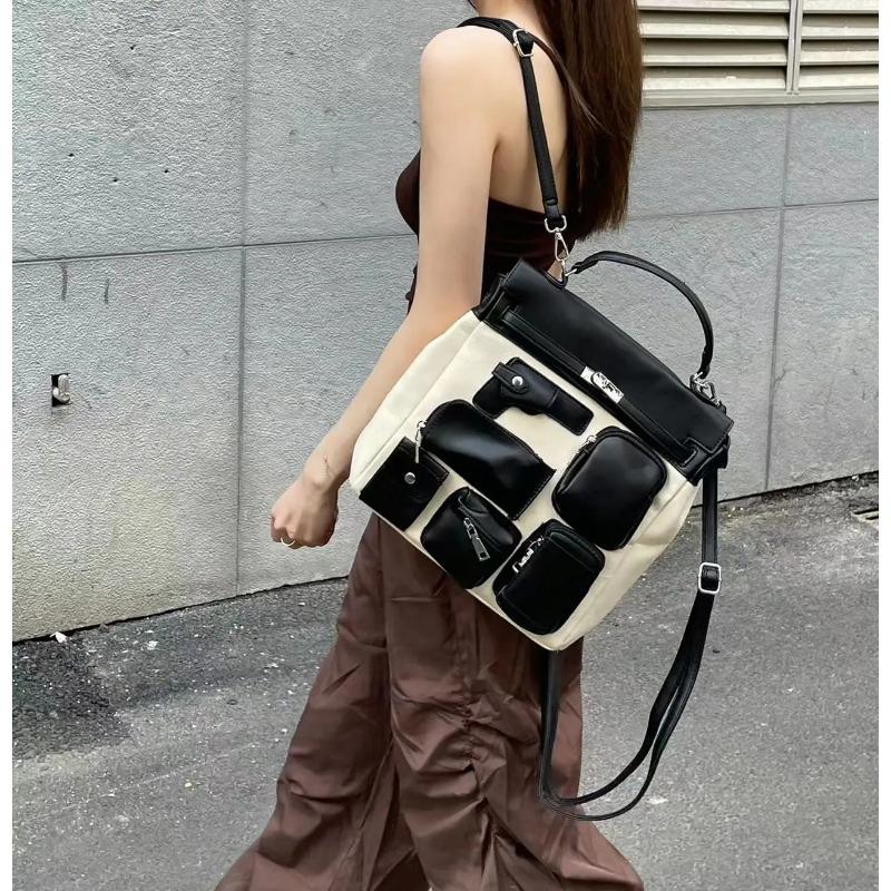 Дизайнерский мотоциклетный рюкзак с несколькими карманами унисекс из холста, школьная сумка, сумки для документов, сумки через плечо для женщин, лидер продаж