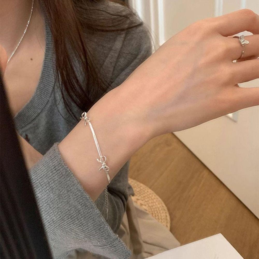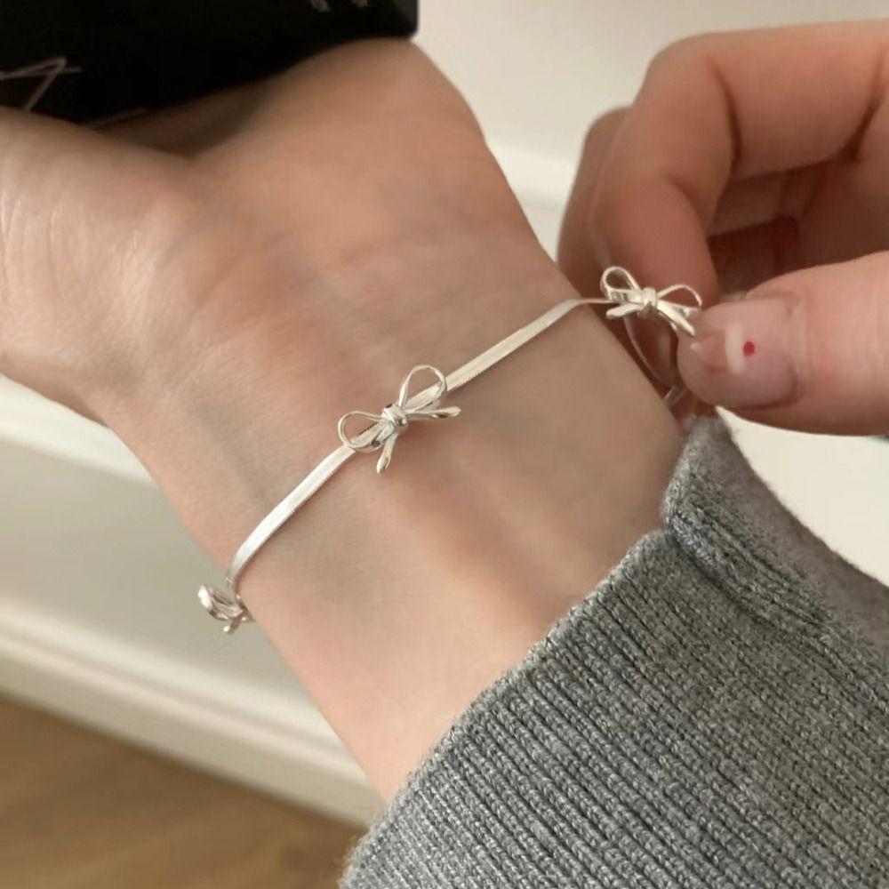 Ювелирные изделия Подарки Браслеты с бантом Серебряный цвет Змеиные кости Браслет-цепочка Новый браслет с лентой и бантом