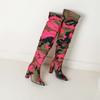 Туфли Lenkisen из ткани с камуфляжным узором, осенне-зимние, на очень тонком каблуке, плиссированные ботинки, европейские теплые сапоги выше колена — купить товар онлайн с бесплатной доставкой по всему миру!