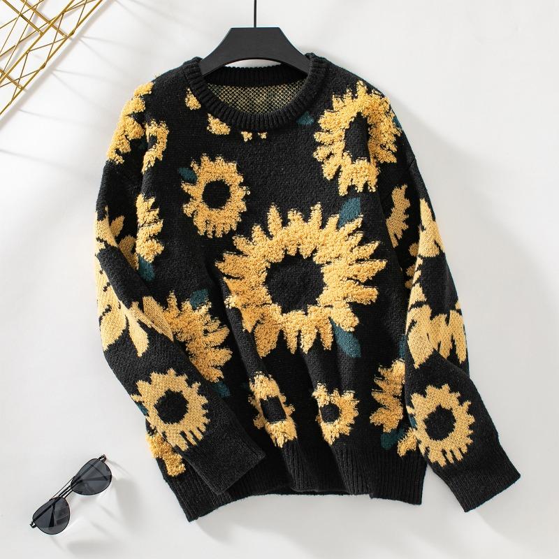 JKASHDK Женская мода повседневная осень-зима цветочный узор с длинным рукавом и круглым вырезом свитера