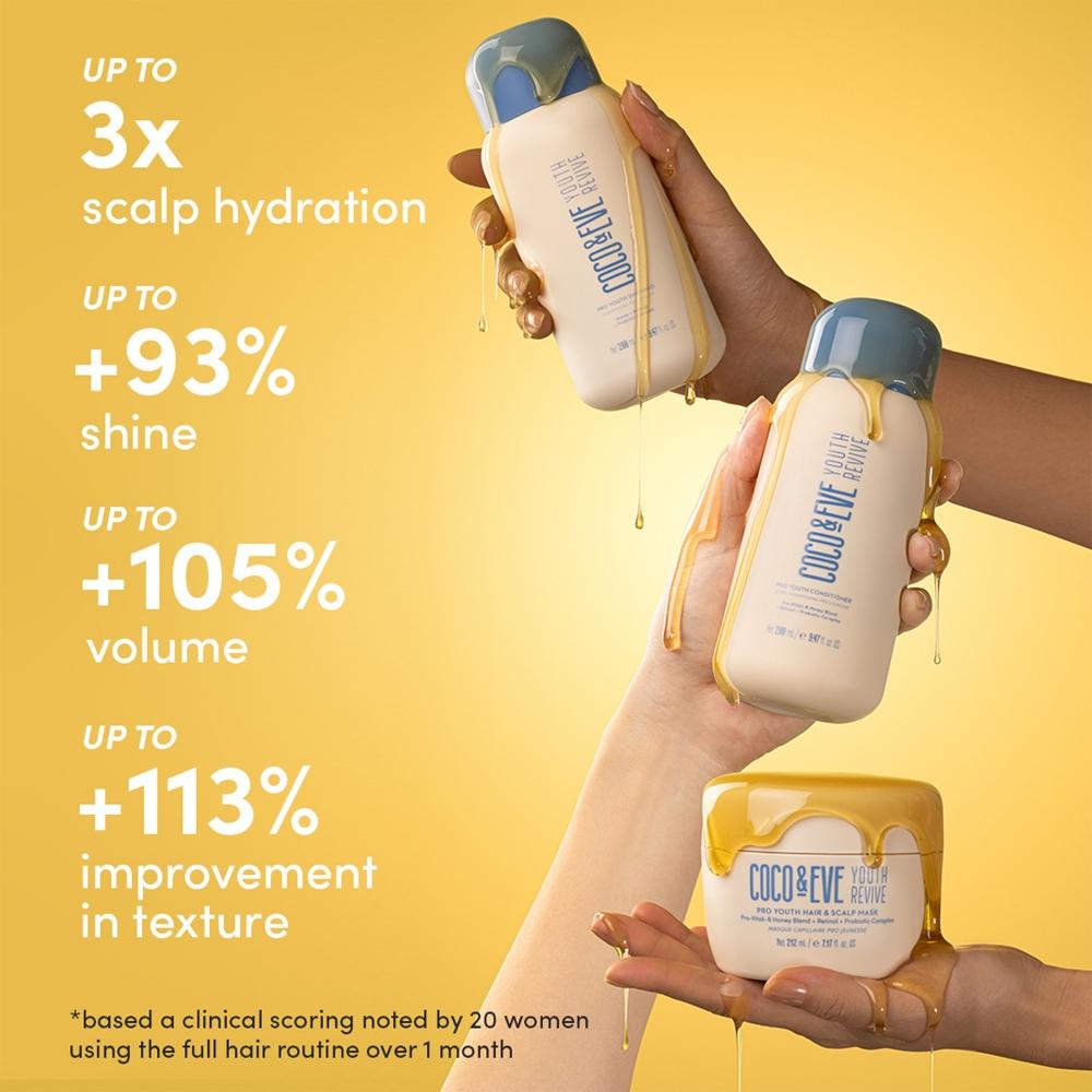 Коко и Ева&апос;s Youth Revive Pro Youth Hair & Scalp Mask — это ультрапитательная формула, которая восстанавливает блеск и жизненную силу волос, сохраняет яркость цвета за одно применение и регулирует выделение кожного сала, уменьшая перхоть и жирность кожи головы.