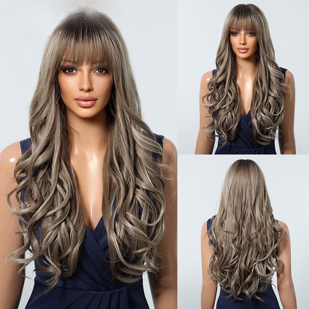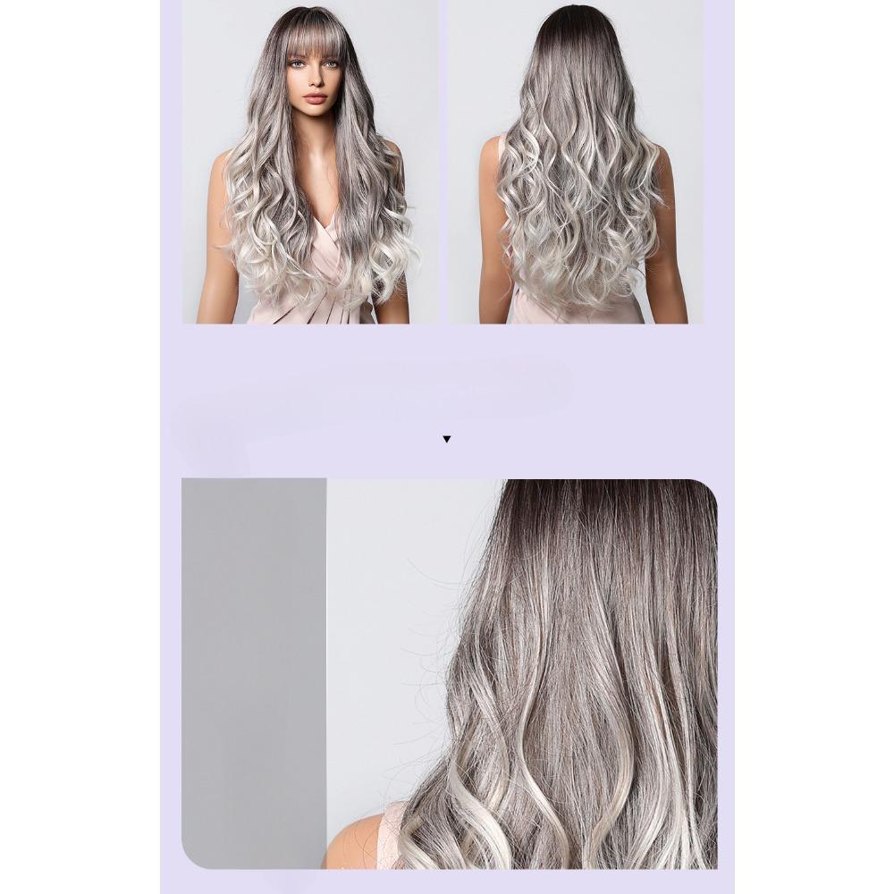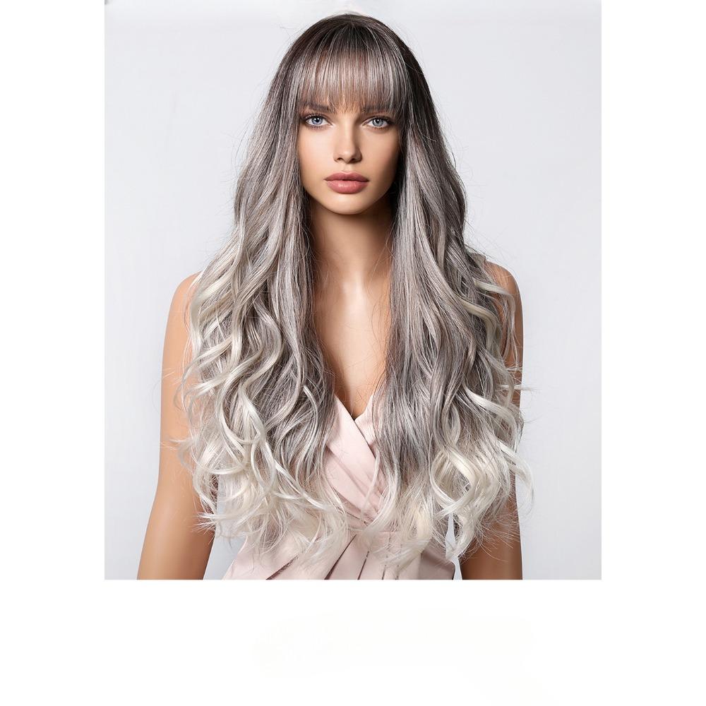 Новый парик с вьющимися волосами, полностью покрывающий голову, естественные и реалистичные воздушные челки, постепенно меняющие седые волны