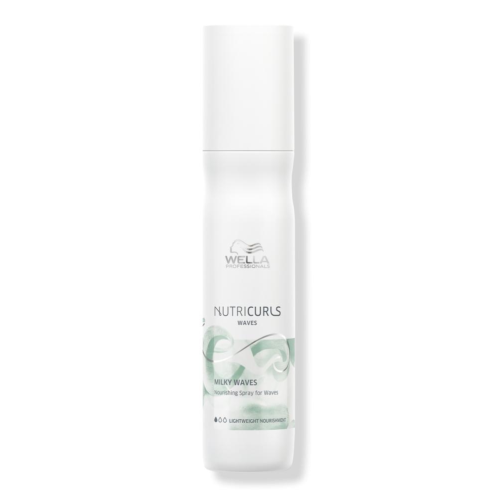 Питательный спрей Milky Waves Nourishing Spray от Wella Professionals NUTRICURLS — это легкий несмываемый спрей молочного цвета, который питает и придает послушность мягким волнам.
