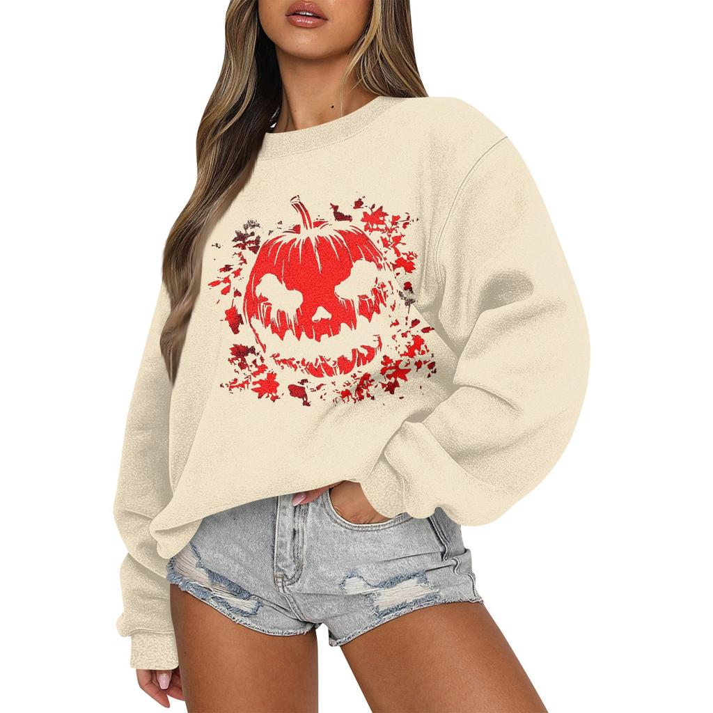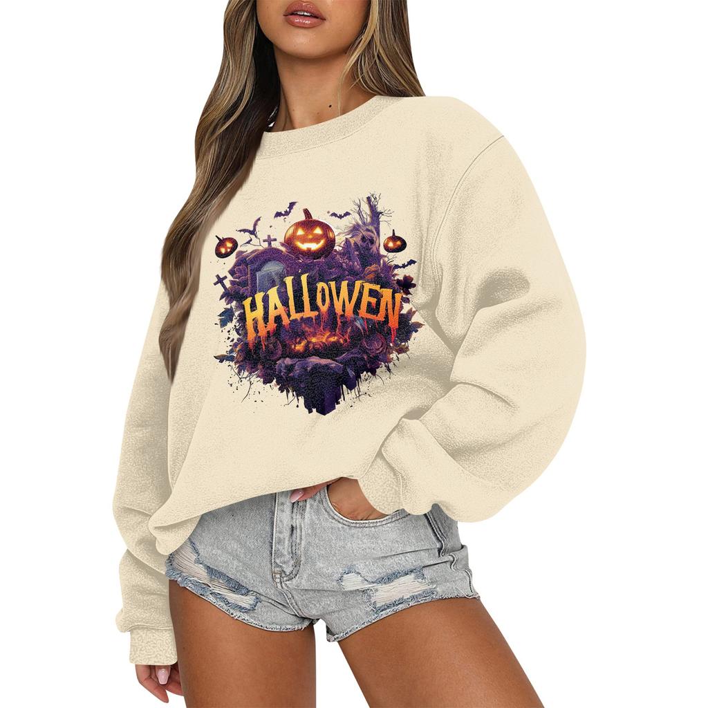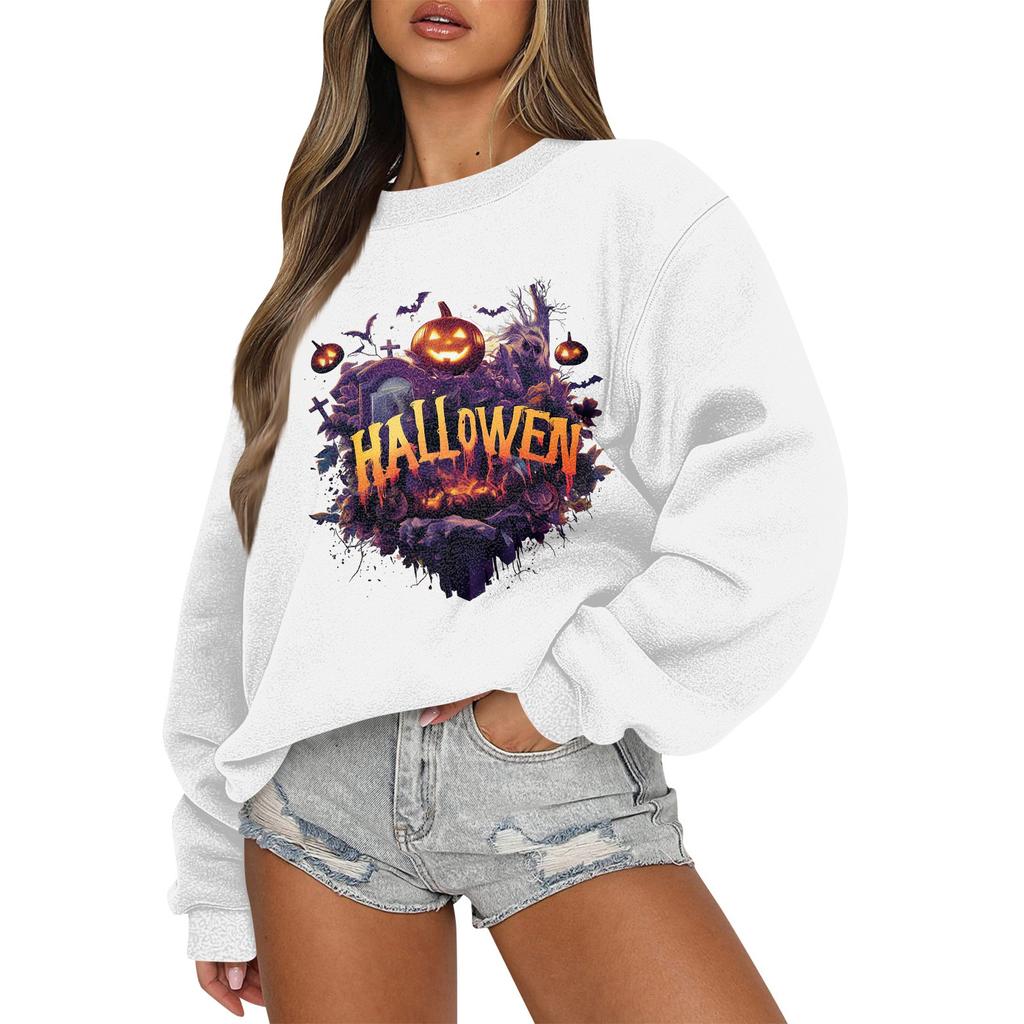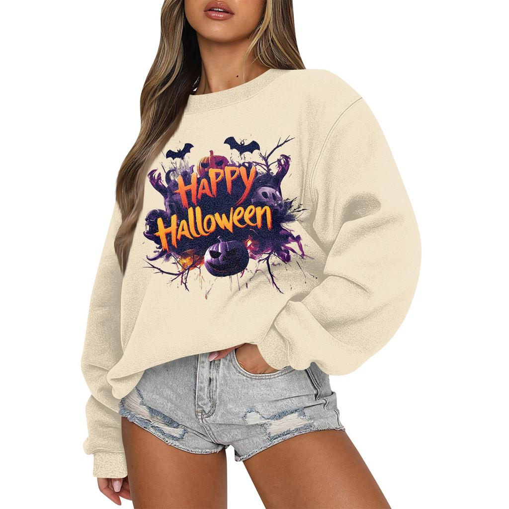 Женский повседневный модный трикотажный спортивный топ с длинными рукавами, свободный крой, Хэллоуин