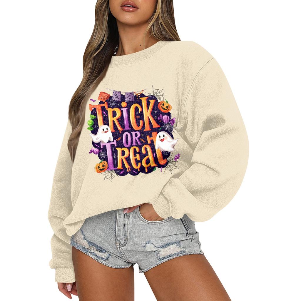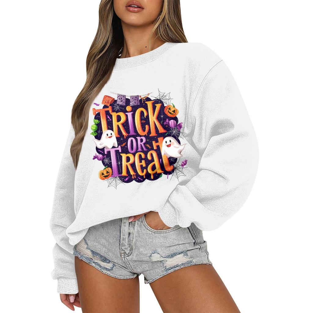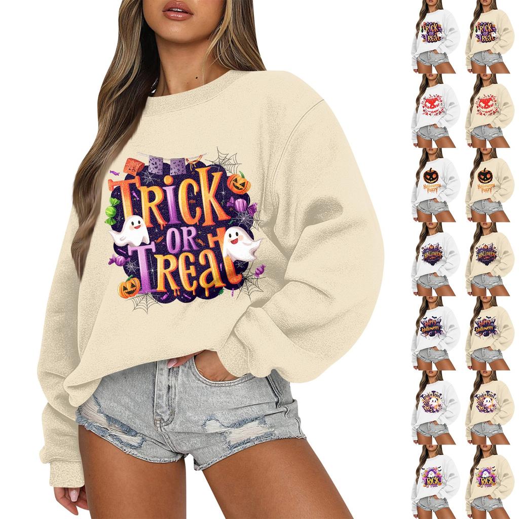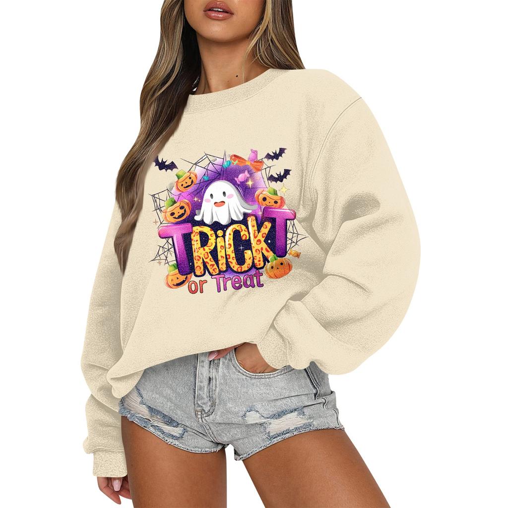 Женский повседневный модный трикотажный спортивный топ с длинными рукавами, свободный крой, Хэллоуин
