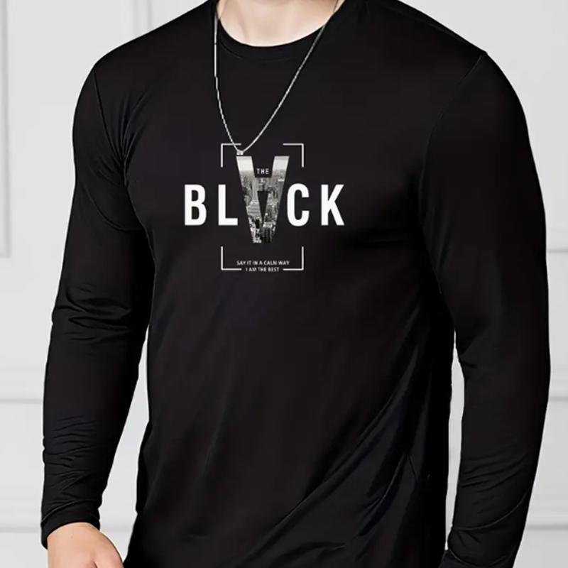 Футболки с художественным принтом в виде алфавита для мужчин, футболки с длинным рукавом, повседневные свитера с круглым вырезом, мужская одежда больших размеров