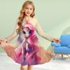 Повседневное платье для девочек с 3D-принтом, розово-красным единорогом, круглым вырезом и длинными рукавами, детское платье принцессы