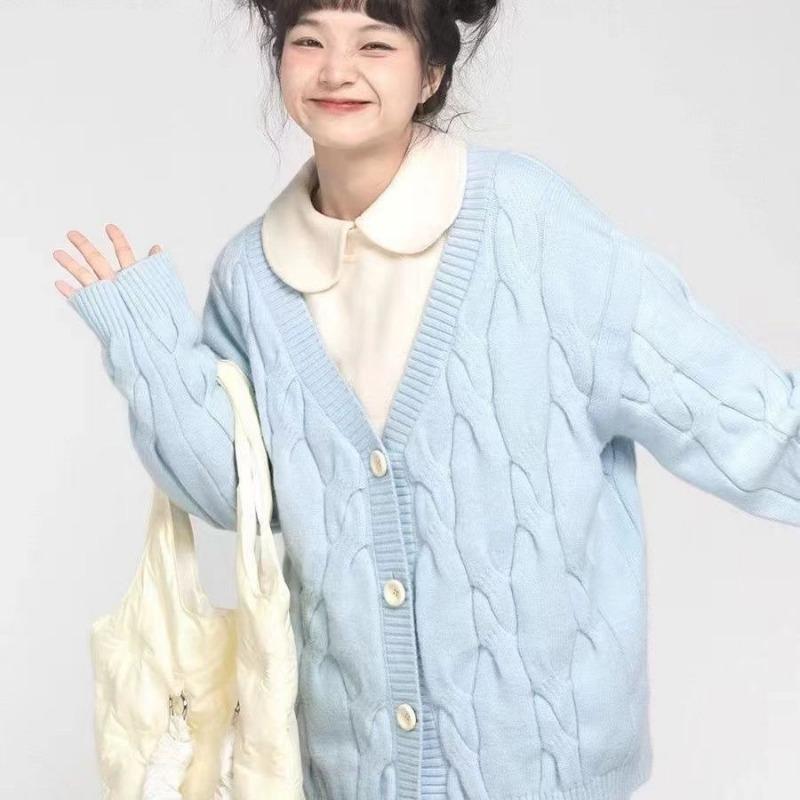 Свободный крой, новая верхняя одежда, повседневный вязаный кардиган, осень-зима, весна и осень, свитер, ленивый, синий, с V-образным вырезом, колледж — купить товар онлайн с бесплатной доставкой по всему миру!