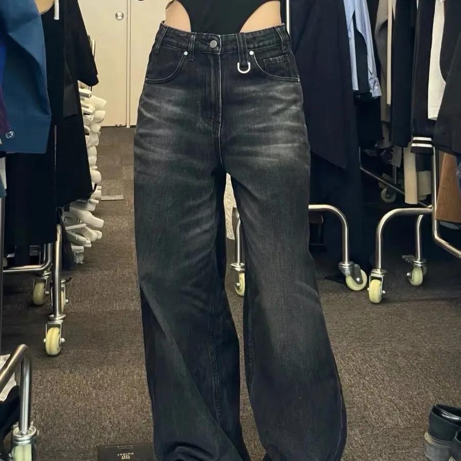 Винтажные черные широкие джинсы женские свободные уличные корейские модные мешковатые джинсовые брюки гранж женские хип-хоп