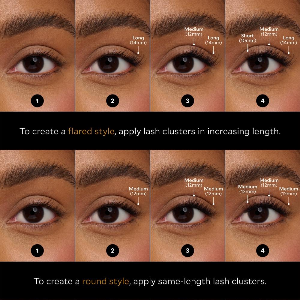 Легкие кластеры Velour-Xtension Classic Lash Clusters Velour Lashes полностью индивидуальны, поэтому вы можете укладывать ресницы по своему усмотрению.. Используйте кластеры одинаковой длины для естественной круглой формы. (12, 12, 12) или постепенно более длинные кластеры для расклешенной формы кошачьего глаза (10, 12, 14).