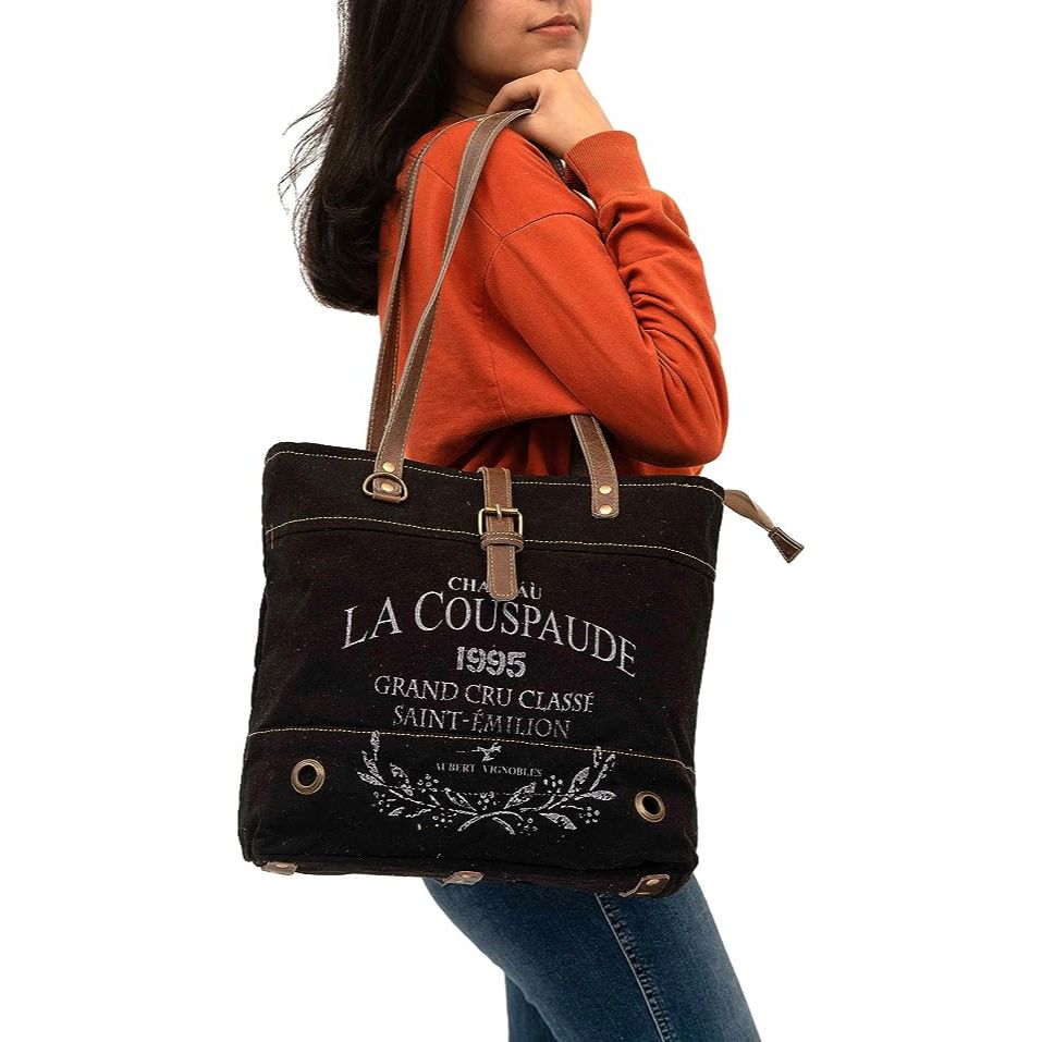 кожаная подкладка 100% качественный холщовый ручная сумка из переработанного материала.
