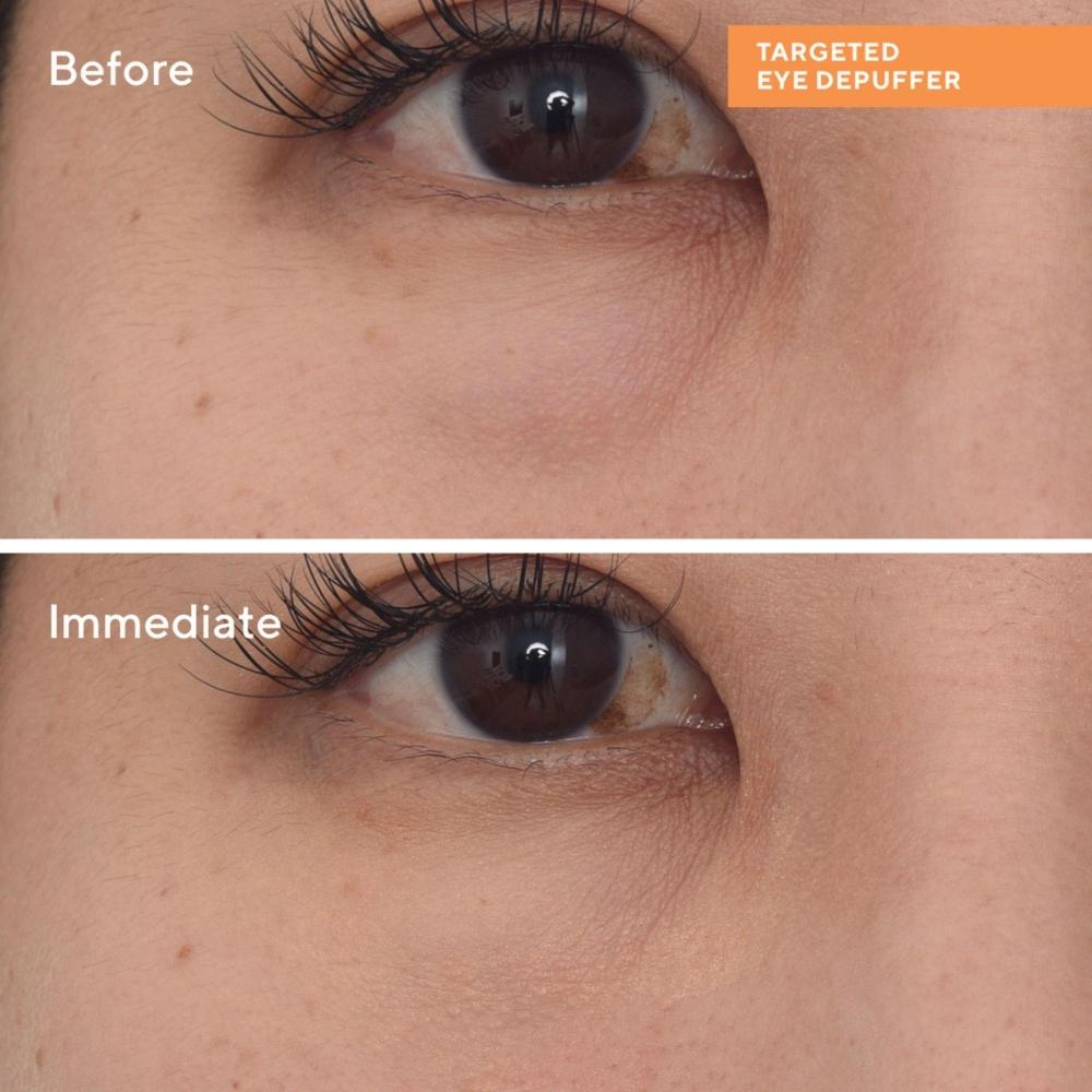 Заметно подтягивает и укрепляет область вокруг глаз при каждом использовании. (и со временем), уменьшает отёчность под глазами для длительного результата