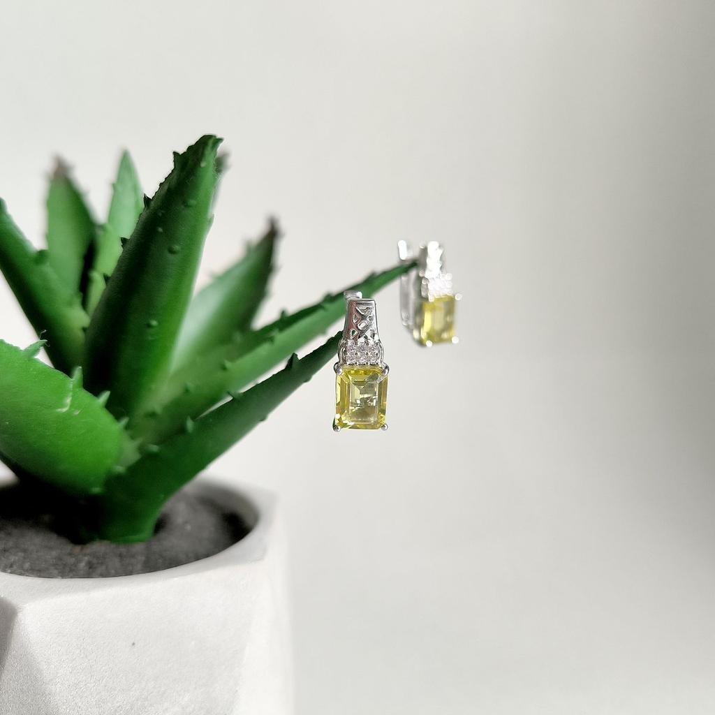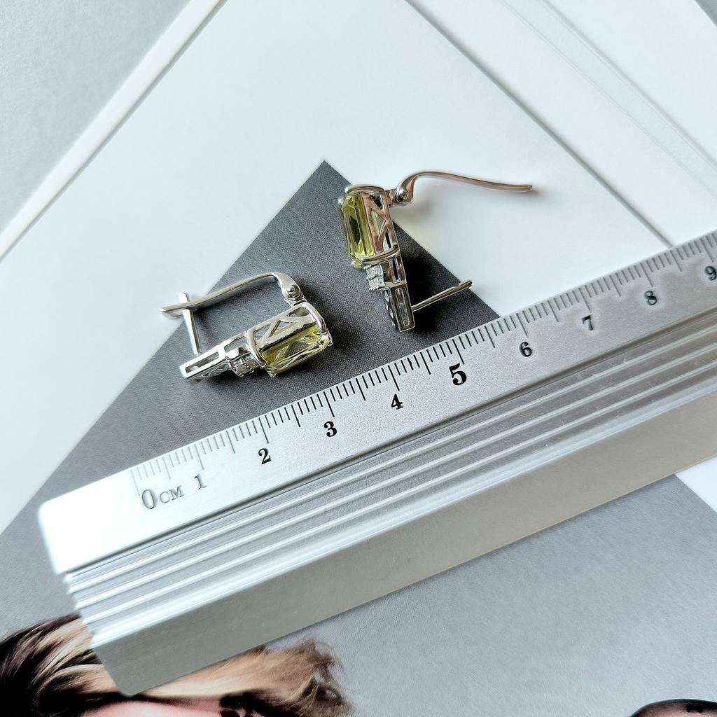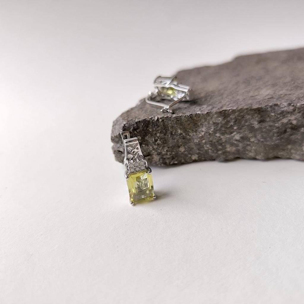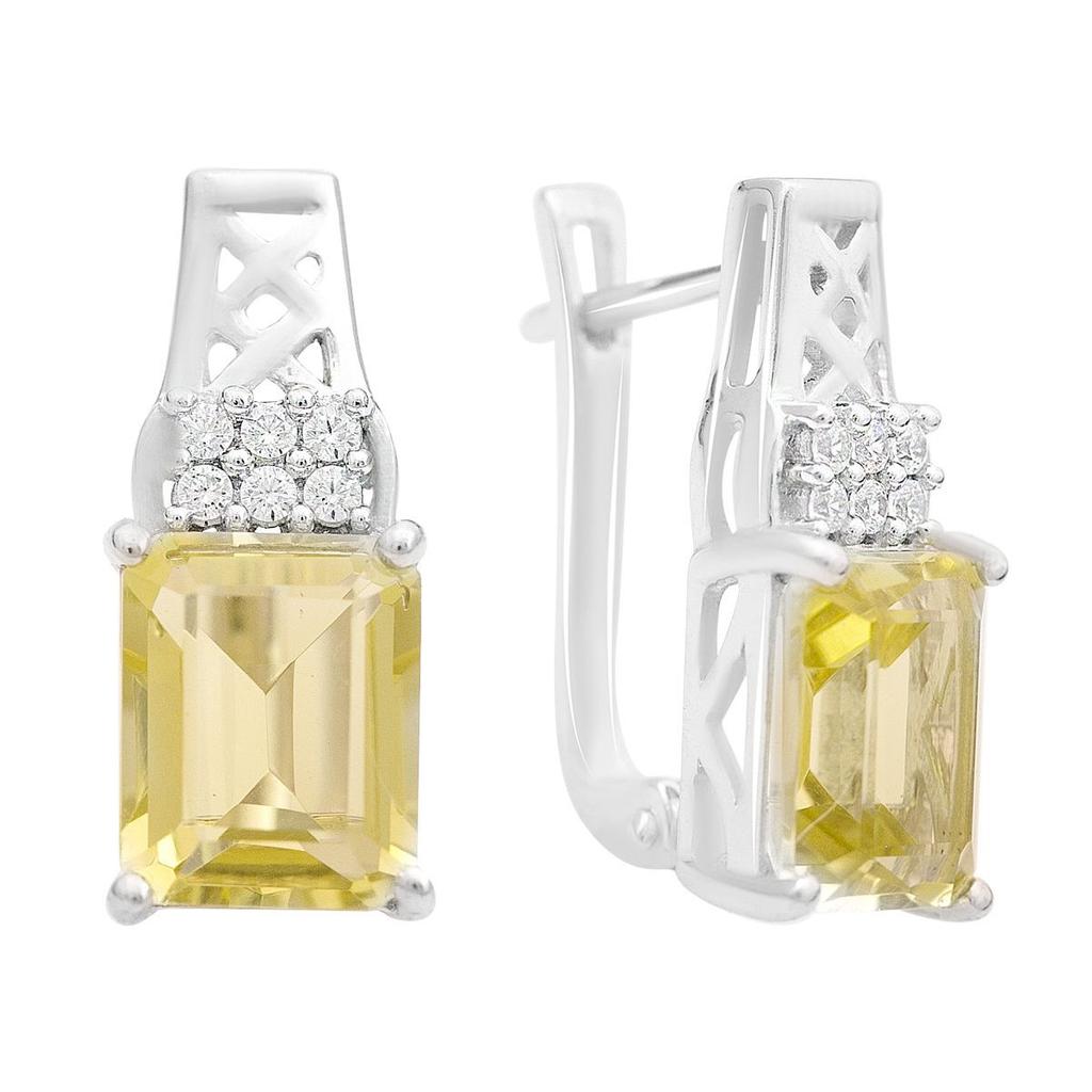 Серебряные серьги с Натуральным зеленим кварцем, фианитами (2162070)