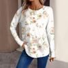 Женская мода повседневный топ с длинным рукавом с цветочным принтом и круглым вырезом