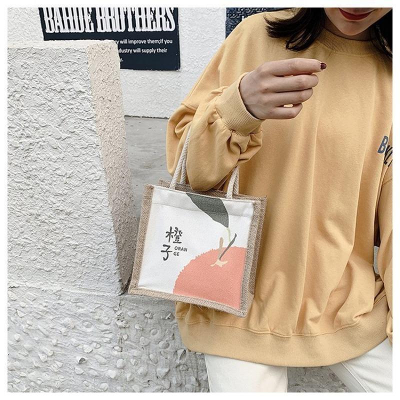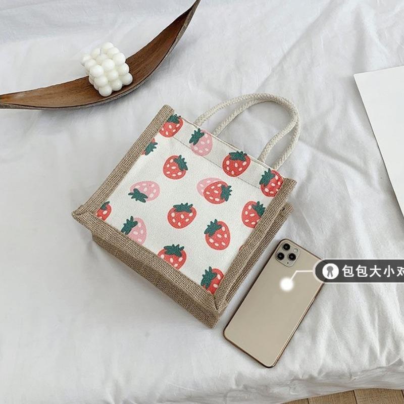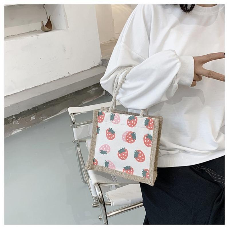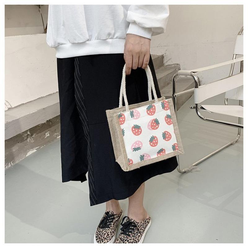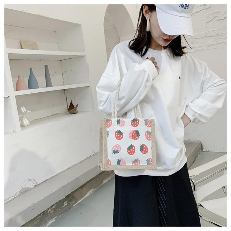 Женская сумка Национальная мода Корейская версия Женская сумка Печатная фруктовая драма Льняная модная тенденция Женская сумка