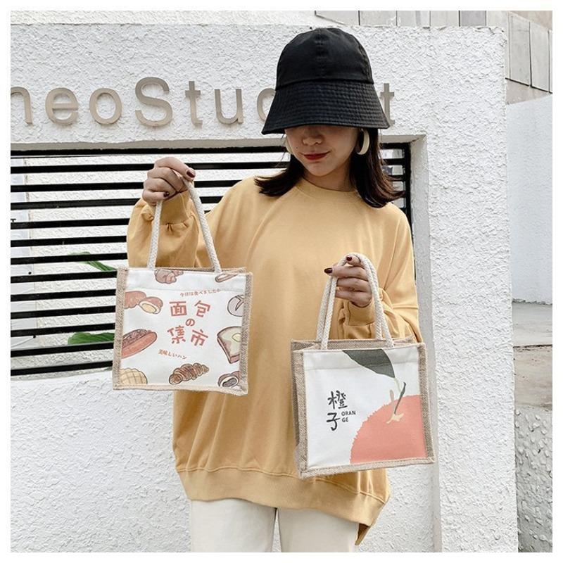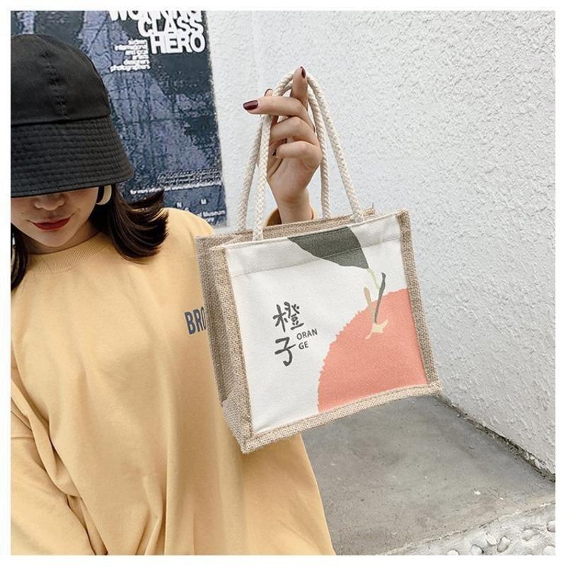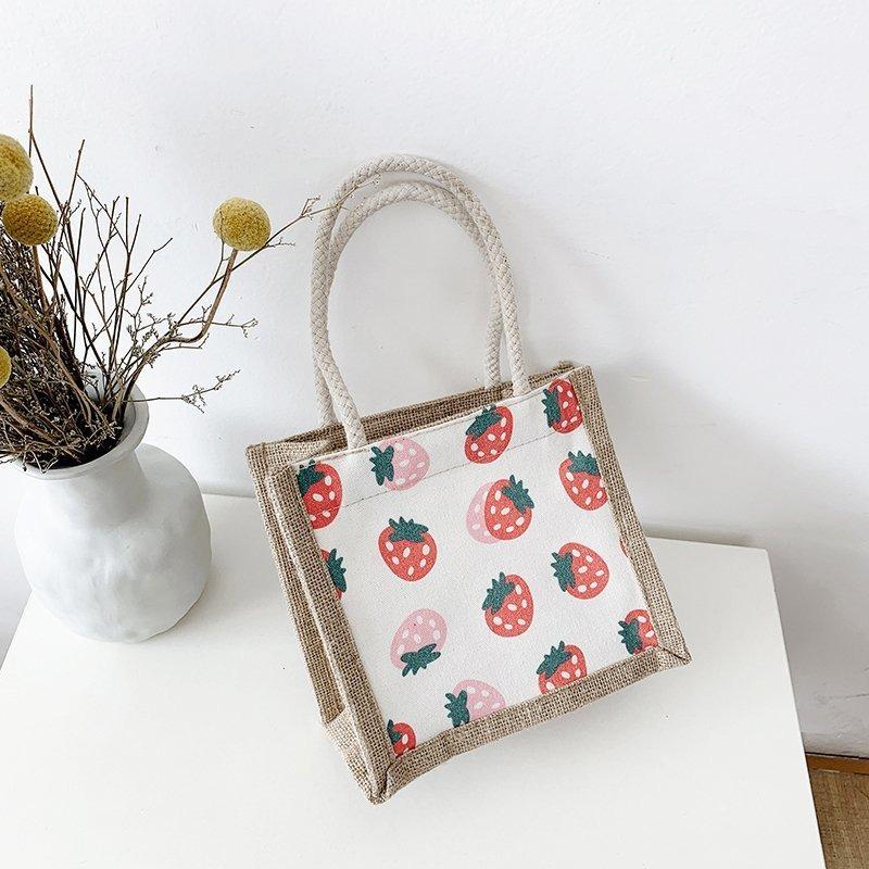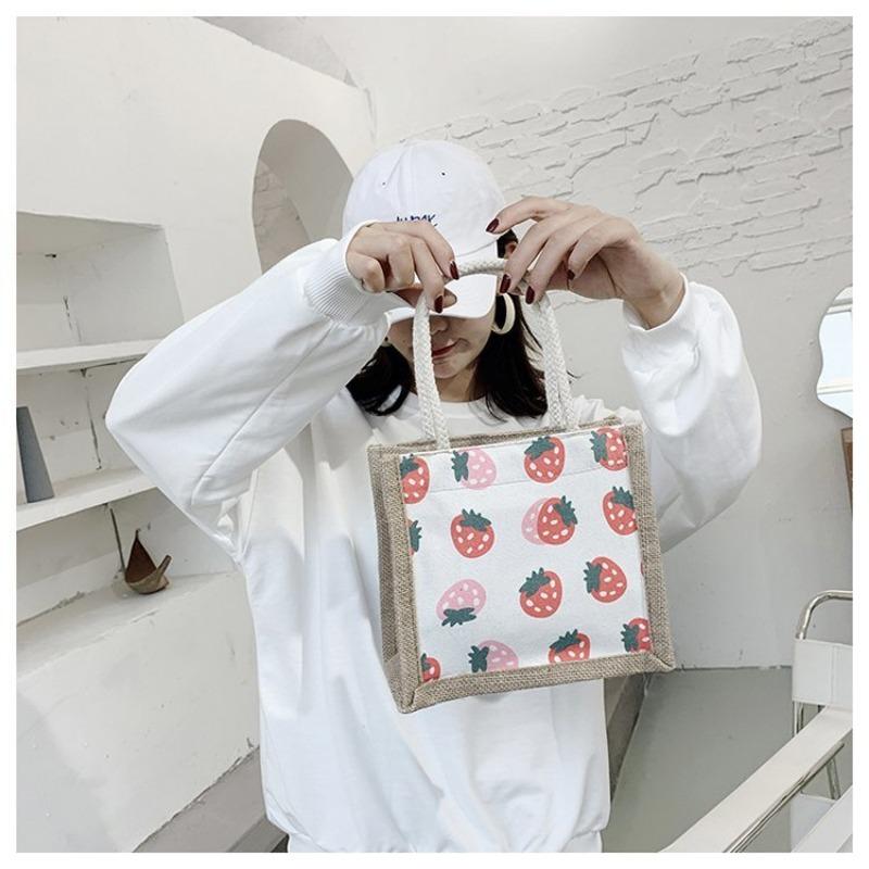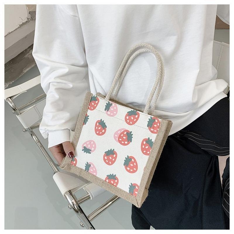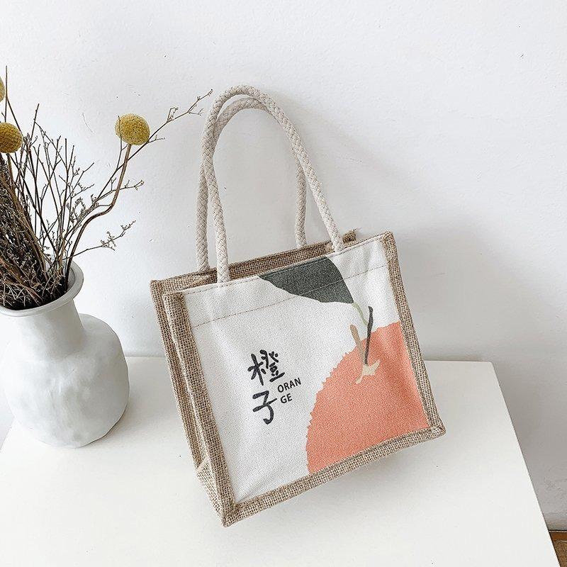 Женская сумка Национальная мода Корейская версия Женская сумка Печатная фруктовая драма Льняная модная тенденция Женская сумка