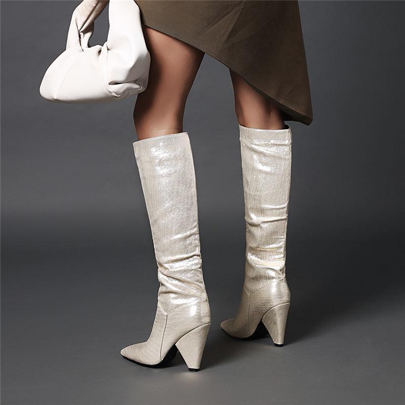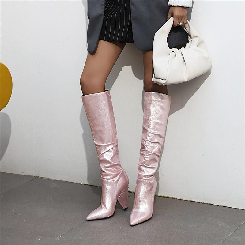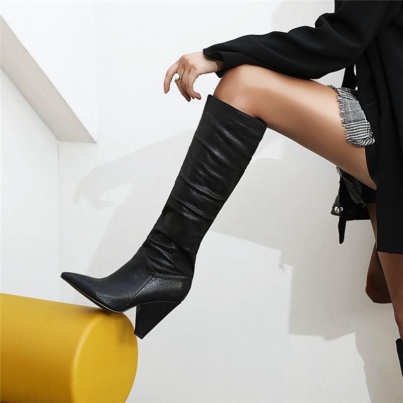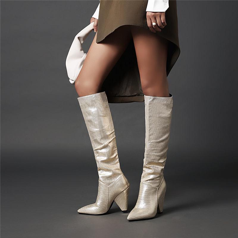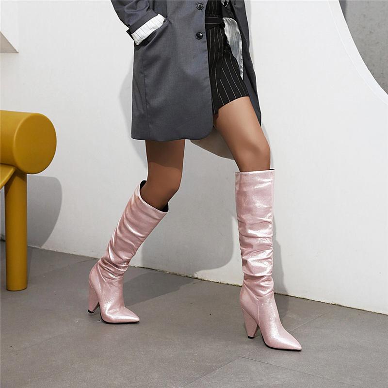 Женские сапоги на высоком каблуке, осенне-зимние, новые, в европейском и американском стиле, с острым носком, на толстом каблуке, большие размеры, до середины икры