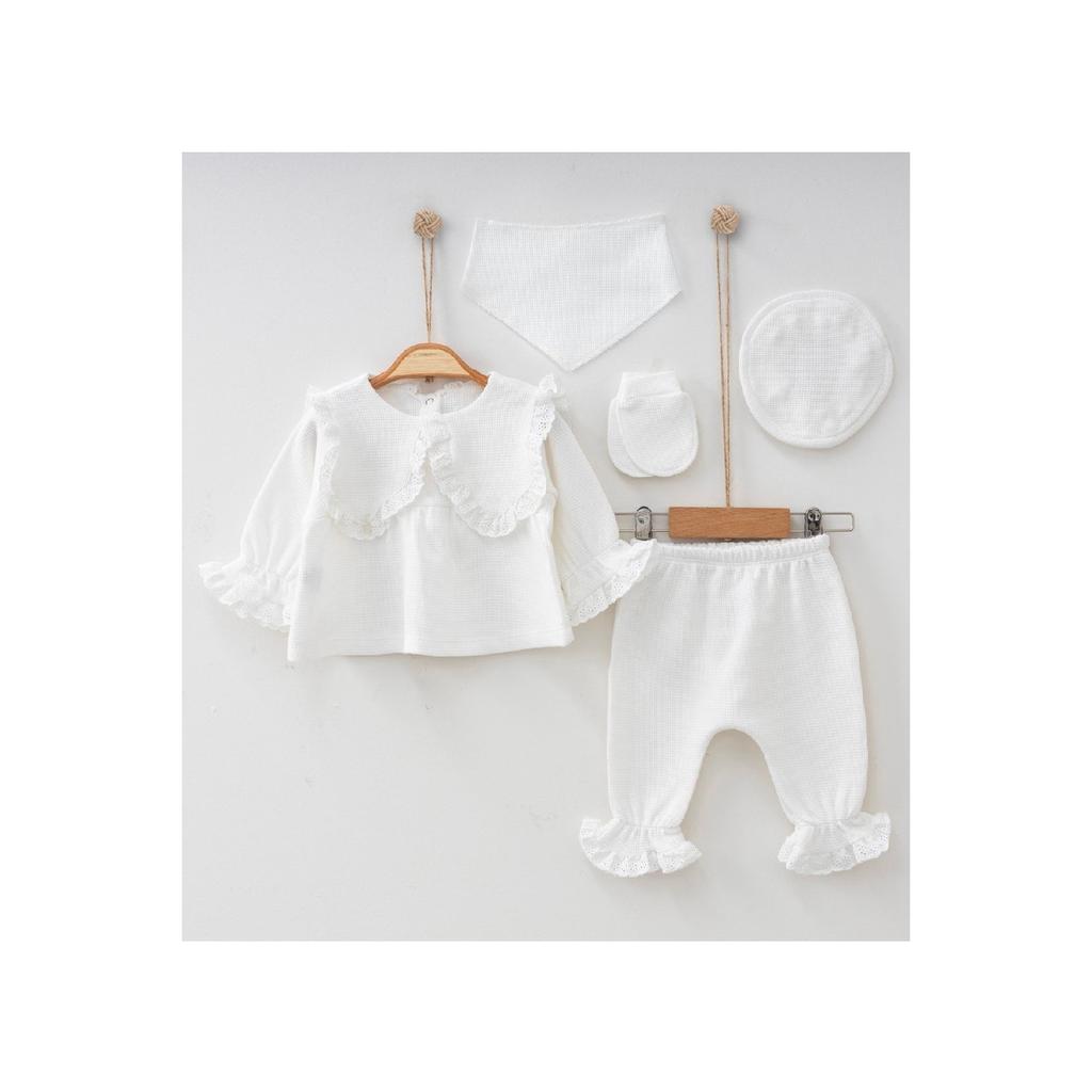 Комплект из 5 предметов для новорожденных 0–3 месяцев цвета бежево-бежевого цвета с фестончатым узором Hospital Release для девочек — купить товар онлайн с бесплатной доставкой до всему миру!