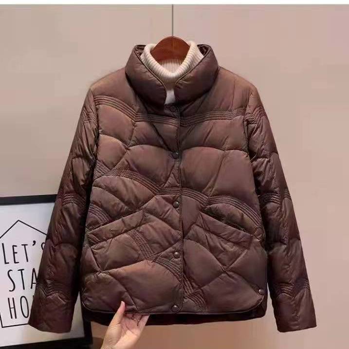 Повседневная и простая женская легкая хлопковая куртка-пуховик с воротником-стойкой сохранит тепло на осень-зиму