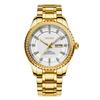Мужские золотые часы с календарем и браслетом из нержавеющей стали, модные деловые кварцевые наручные часы для мужчин
