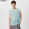 INCERUN Мужские сетчатые майки без рукавов с кружевным лоскутным узором, летний жилет