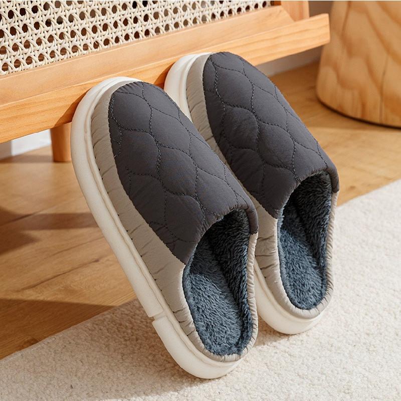 Зимние мужские плюшевые тапочки для дома, толстые балетки, мягкая подошва, водонепроницаемая домашняя обувь, теплые меховые мужские тапочки, нескользящая обувь