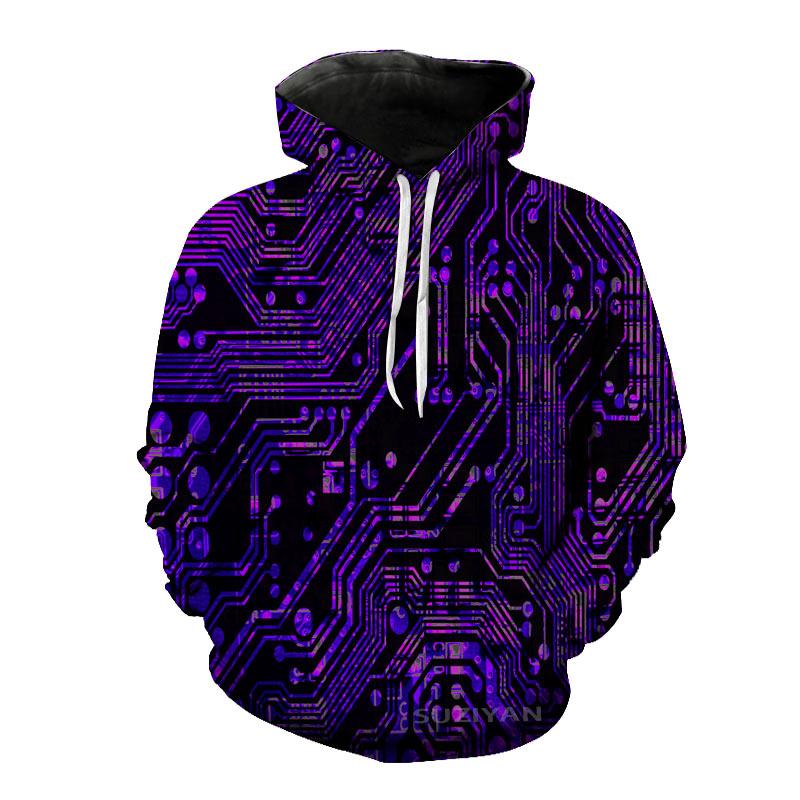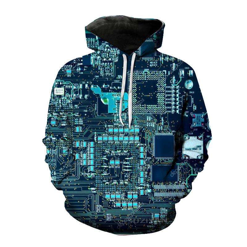 Электронный чип 3D-печать Весна Осень Мужская толстовка с капюшоном Креативная повседневная хип-хоп вечеринка уличная комфортная одежда
