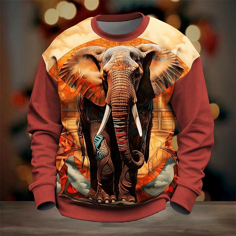 Мужские толстовки с капюшоном уличная мода слон граффити принт толстовка свободного покроя веселый круглый вырез пуловер уличная мужская одежда