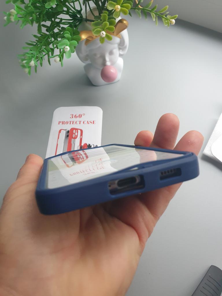Чехол для смартфона с эффектом полной защиты на 360° подошел идеально на мой Samsung S21. Всё разъёмы совпадают. Телефон в чехле зафиксирован, не болтается. По ссылке есть чехлы на другие модели смартфонов Samsung, Apple, Xiaomi, Realme, Oppo. Приподнятые бортики на экране и вокруг камер защищают их от ударов. Через пленку на экране отлично работает сенсор. Тачскрин работает корректно. Для сенсора отпечатка пальцев предусмотрено специальное окошко - это очень удобно, однако через него попадает внутрь чехла мелкий мусор. Доставка около месяца. Чехол был с защитной плёнкой на передней и задней поверхности. В комплекте с чехлом флаер со схематической инструкцией по надеванию чехла. Использую чехол вторую неделю - нравиться: экран не поцарался. Сам чехол выглядит, как в первый день. Рекомендую!