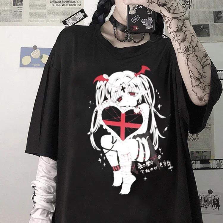 Женская футболка Harajuku Goth Женская футболка Эстетическая свободная панк темный гранж женские готические топы футболки одежда уличная одежда Y2k