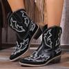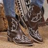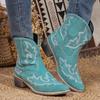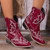Женские ковбойские сапоги с острым носком, очень массивные каблуки, вышитые ковбойские сапоги, женские ботинки с V-образным вырезом и широкими щиколотками
