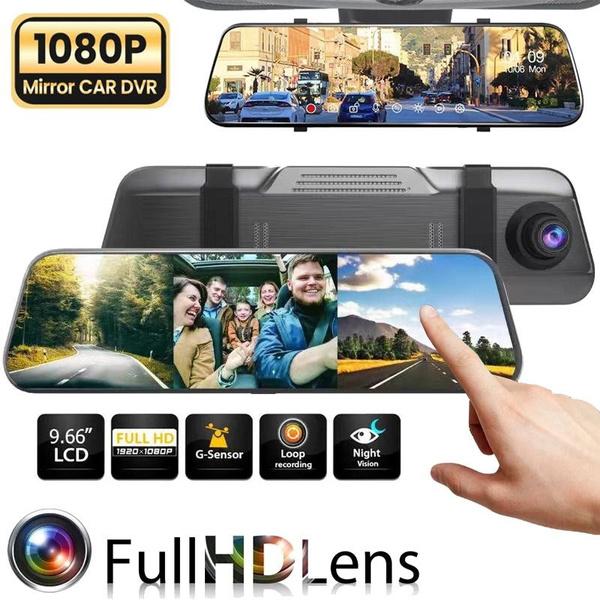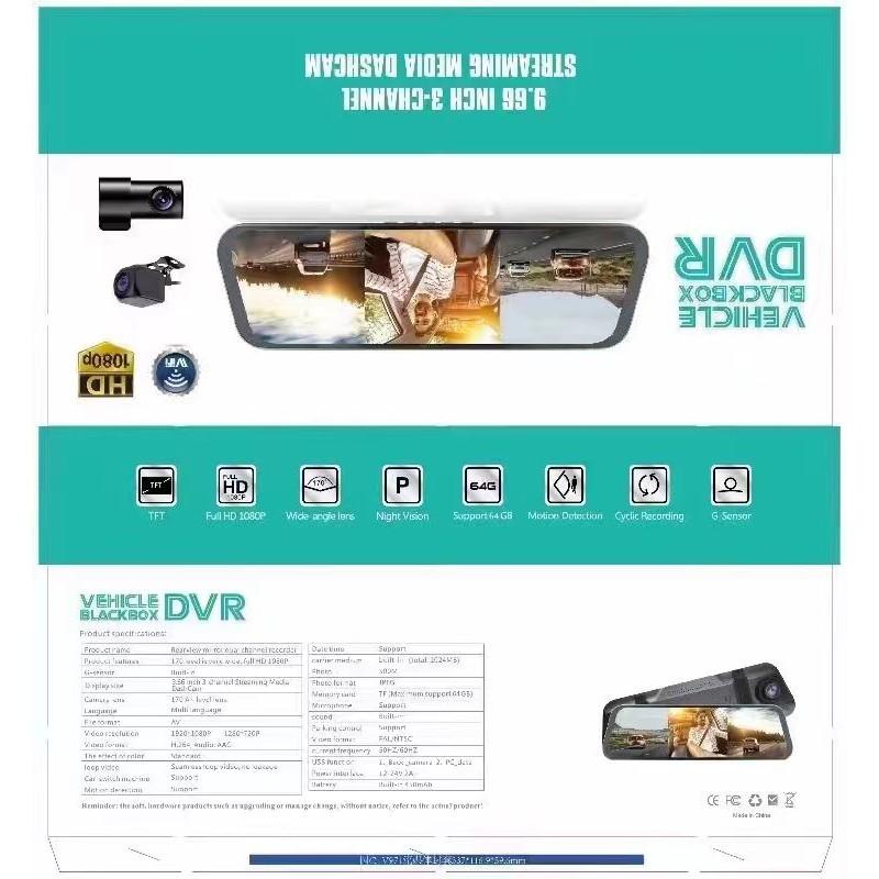 Регистратор потокового мультимедиа с тремя объективами, 9,66-дюймовый сенсорный экран, Wi-Fi, панорамный видеорегистратор, поддержка обратного изображения, мониторинг парковки