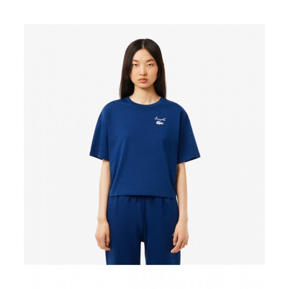 Lacoste Женская футболка с коротким рукавом и графическим принтом [темно-синяя]