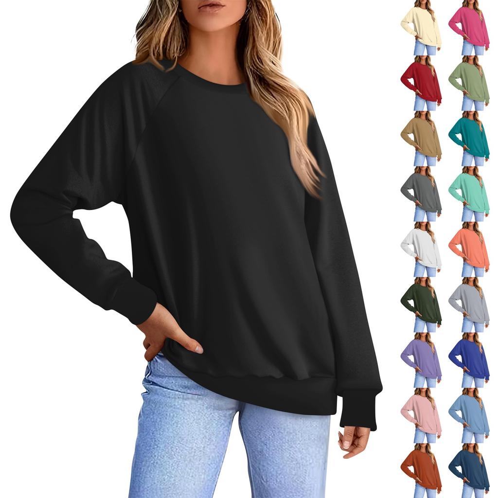 Женская повседневная модная однотонная блузка с длинным рукавом и круглым вырезом с рукавом реглан — купить товар онлайн с бесплатной доставкой до всему миру!