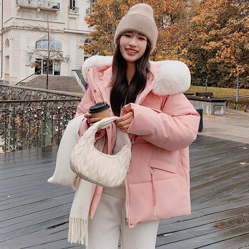 2024 Новое модное корейское стильное пальто с большим меховым воротником, нишевое толстое зимнее пальто из хлопка, теплое уличное пальто — купить товар онлайн с бесплатной доставкой по всему миру!