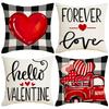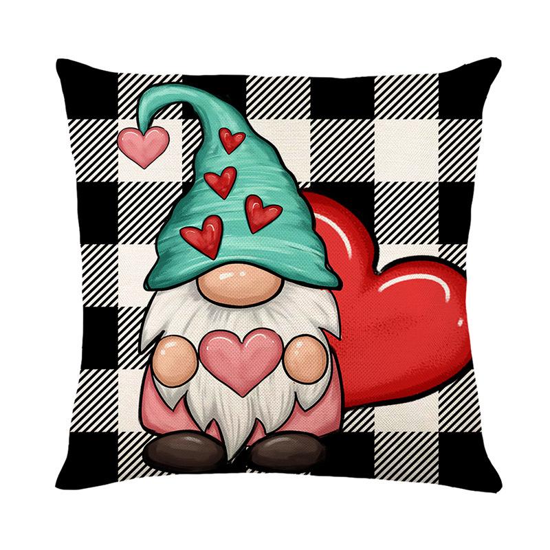 Valentine's Day Throw Pillow Linen Letter Plaid Printed Living Room Sofa Pillow Cover Cushion Cover