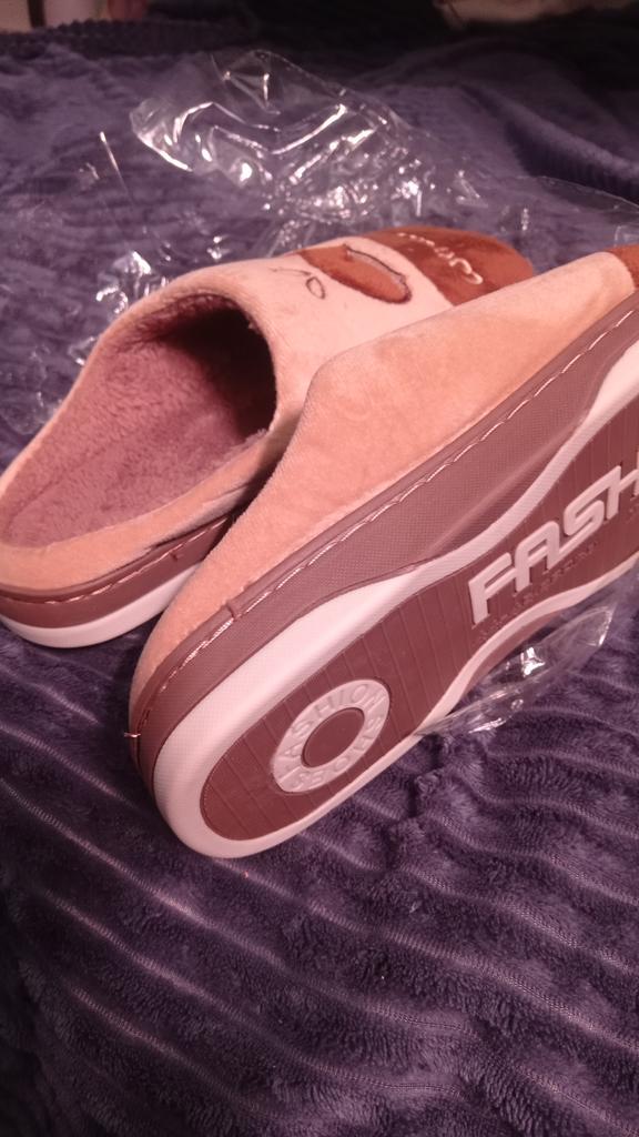 Брала на свой 38 размер тапочки 40-41 размера, прямо впритык, хотелось бы для домашней обуви чтобы было по-свободнее и носок одеть. Но самое плохое, что тапочки порвались по заднему шву, хотя и месяца не прошло, как я их стала носить, обидно и денег жалко. Если бы в магазине покупала - сдала бы обратно, потому что это явно брак обуви. Написала в поддержку Joom об этой ситуации - денег вернули.