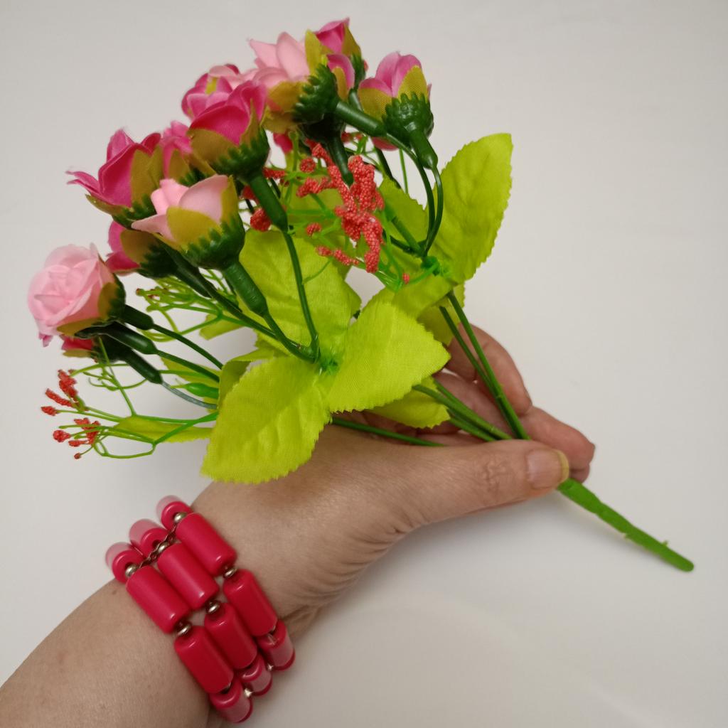 🌹🌹🌹МИНИАТЮРНЫЙ БУКЕТ ИЗ КРОХОТНЫХ РОЗОЧЕК 🌹🌹🌹 Я продолжаю приобретать различные букетики из искусственных цветов. Они мне нужны для оформления своих фотографий, ну и конечно же для декора моего дома. Этот букетик просто малышка! Он совсем миниатюрный. Высота букетика составляет около 25 см. В нём представлены небольшие малиновые и розовые розочки. Всего их в букете насчитывается 21 штука. По три розочки на каждую ветку. Розочки и зелёные листочки выполнены из ткани. Такой букетик мне пригодится в качестве реквизита для мелкой предметной съёмки. Он очень милый и очаровательный. Продавец предлагает пять расцветок такого букетика. Можно выбрать на свой вкус и под цветовую гамму Вашего интерьера. Рекомендую приобрести эту миниатюрную прелесть, ведь такой букет не требует особого ухода и он останется долговечным ещё не один день.