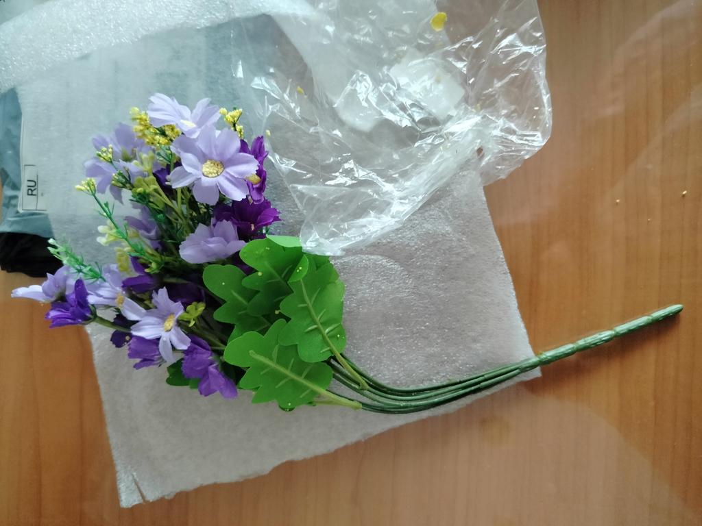 Маленький букетик, все сыпется, доставка очень долгая, продавец не спешил с отправкой