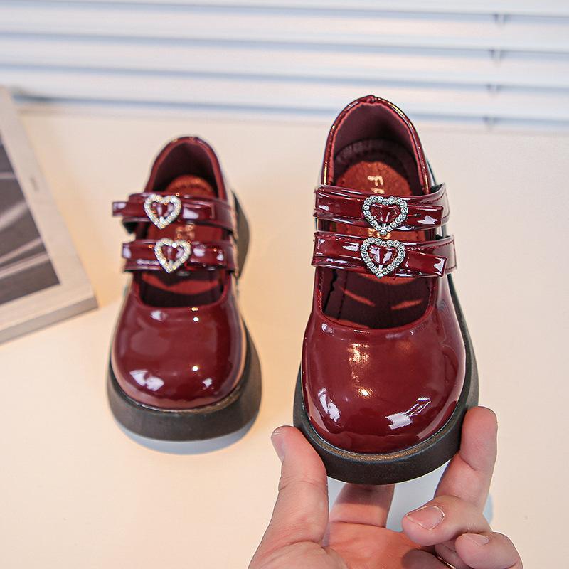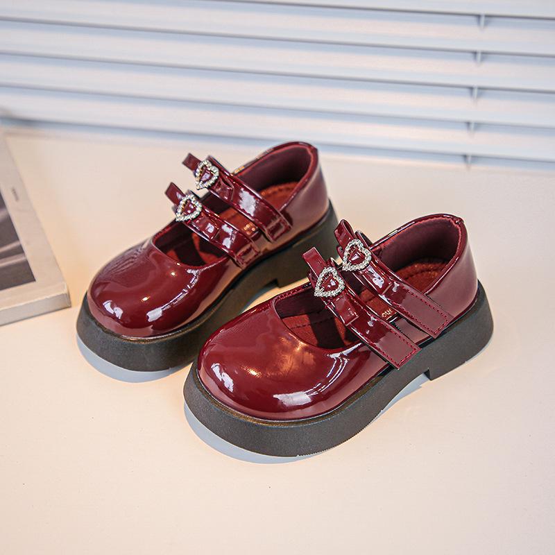Детские кожаные туфли Весенние винно-красные черные элегантные туфли Мэри Джейн для девочек на толстой липучке Красивые удобные детские туфли