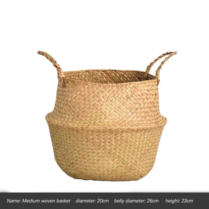 Плетеная корзина, органайзер для игрушек, складная корзина для хранения морской травы из ротанга, плетеная корзина для белья, цветочный горшок для дома и сада