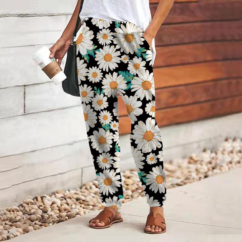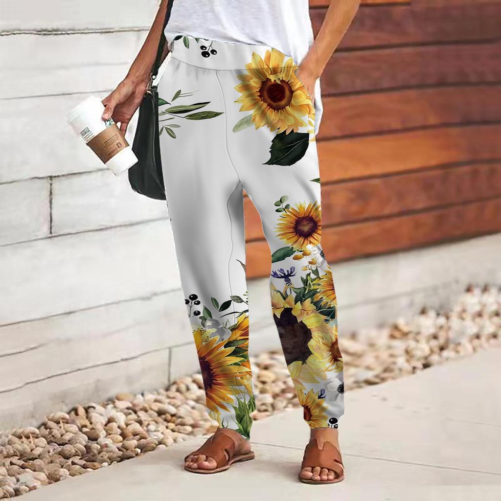 Женские брюки с принтом 3D Green Sunflower, свободные брюки со шнуровкой и эластичным поясом, повседневные длинные брюки с карманами