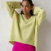 GMXIA Осенне-зимний свитер с V-образным вырезом, свободные длинные рукава